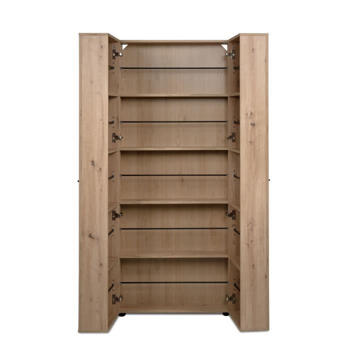 Meuble a chaussures Lugo - Décor chene artisan - 74 x 181,5 x 34 cm - Capacité 32 Paires