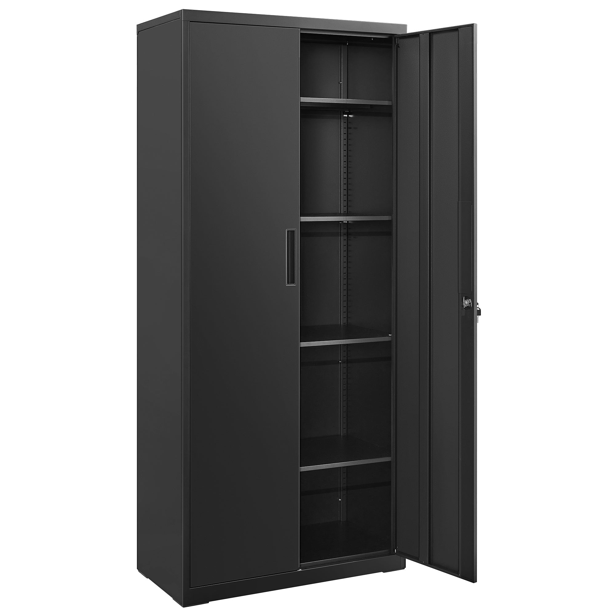 Meuble de Rangement Bureau, en Acier, Placard, 5 Niveaux, Doubles Portes, Serrure, Armoire à Outils, Étagères Réglables, pour Garage, Bureau, Noir Mat