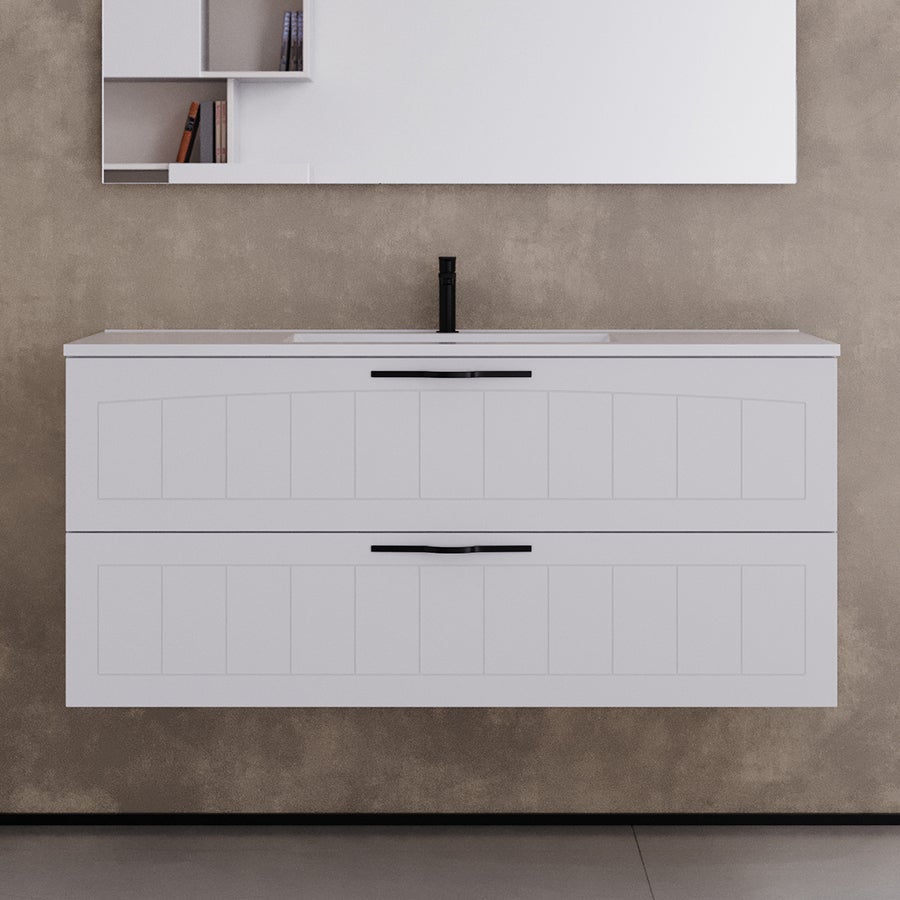 Meuble de salle de bain 120cm simple vasque - 2 tiroirs - sans miroir - blanc - PIA