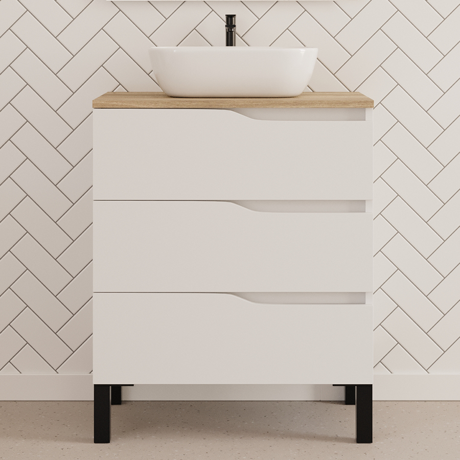 Meuble de salle de bain 60cm avec plateau miel et vasque à poser zeus - 3 tiroirs - sans miroir - blanc - MATA