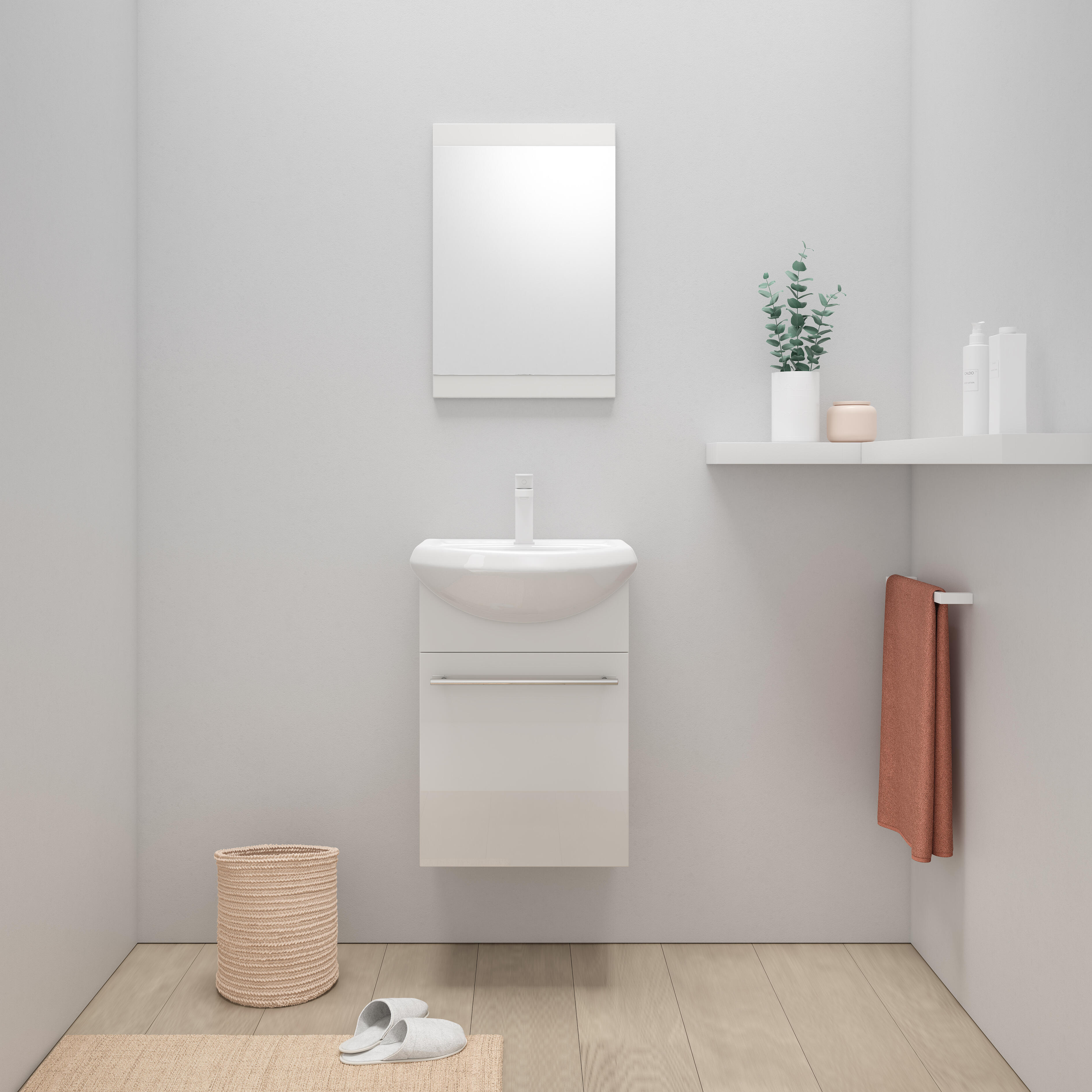 Meuble lave-mains vendu monté, 1p l.42 x H.60 x P.25 cm, blanc, Aroa
