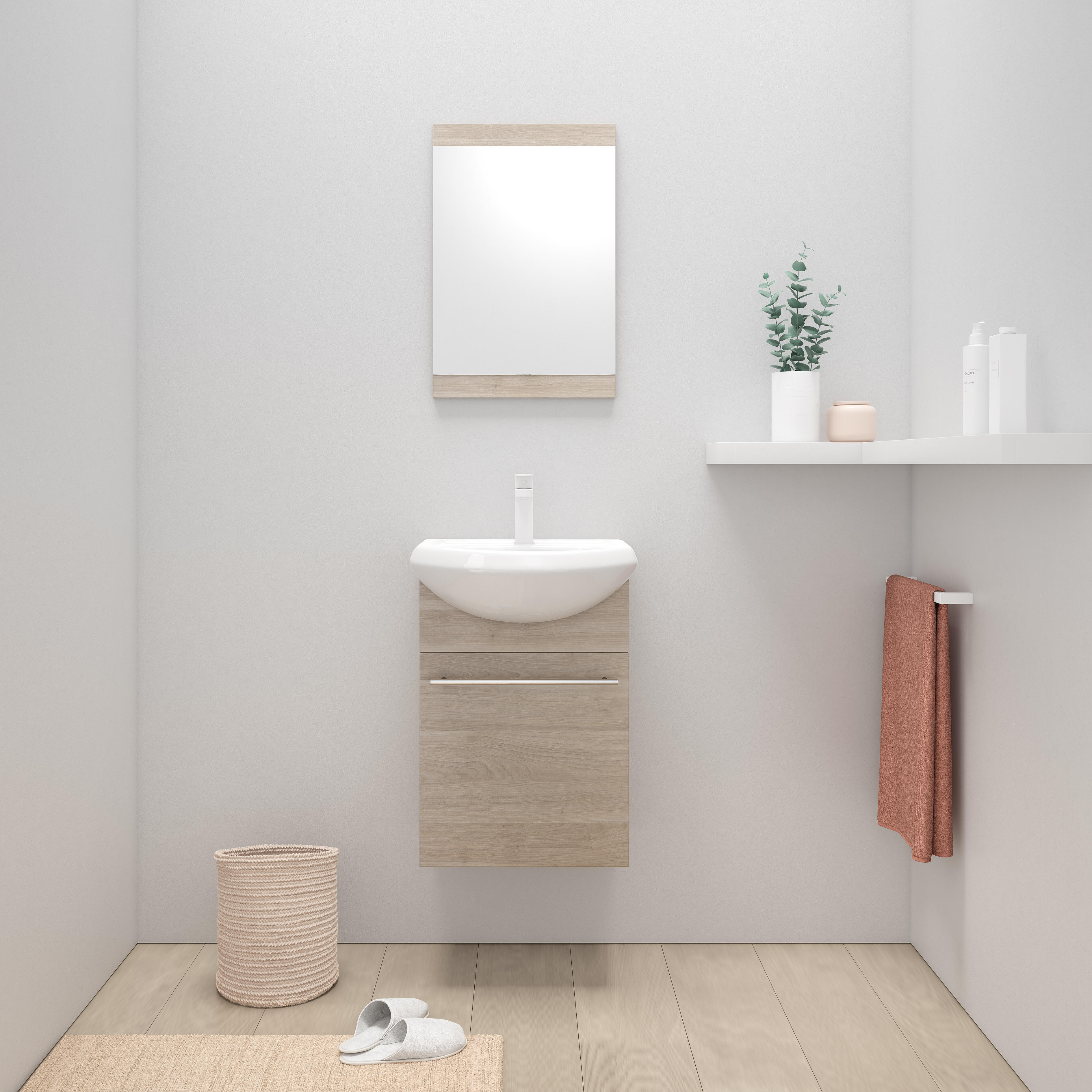 Meuble lave-mains vendu monté, 1p l.42 x H.60 x P.25 cm, imitation bouleau, Aroa