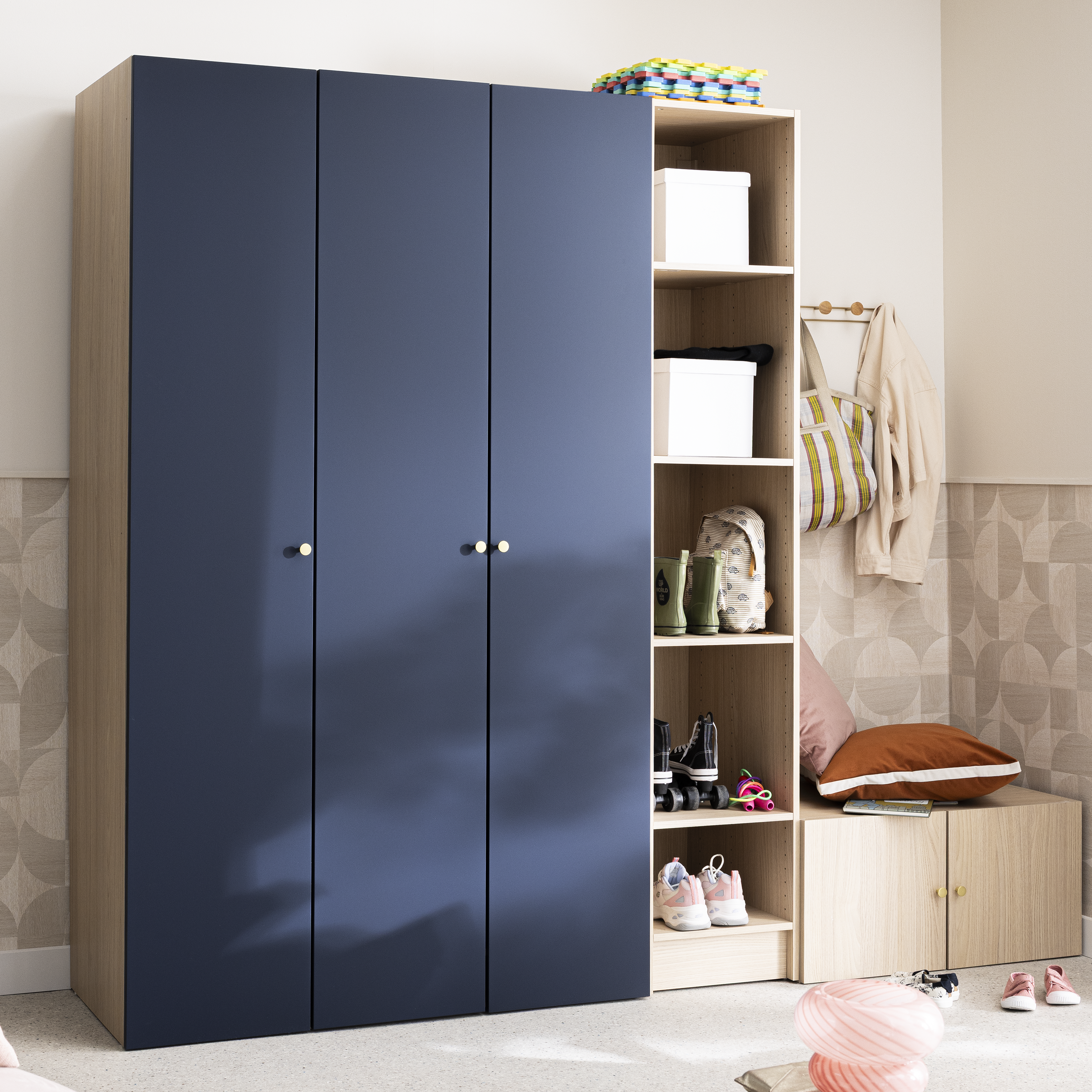 Personnalisez selon l’espace : portes de placard pour dissimuler, modules Spaceo Evo’M et Spaceo Kub pour configurer sur-mesure, et meubles à profondeur adaptée pour ne pas gêner le passage.