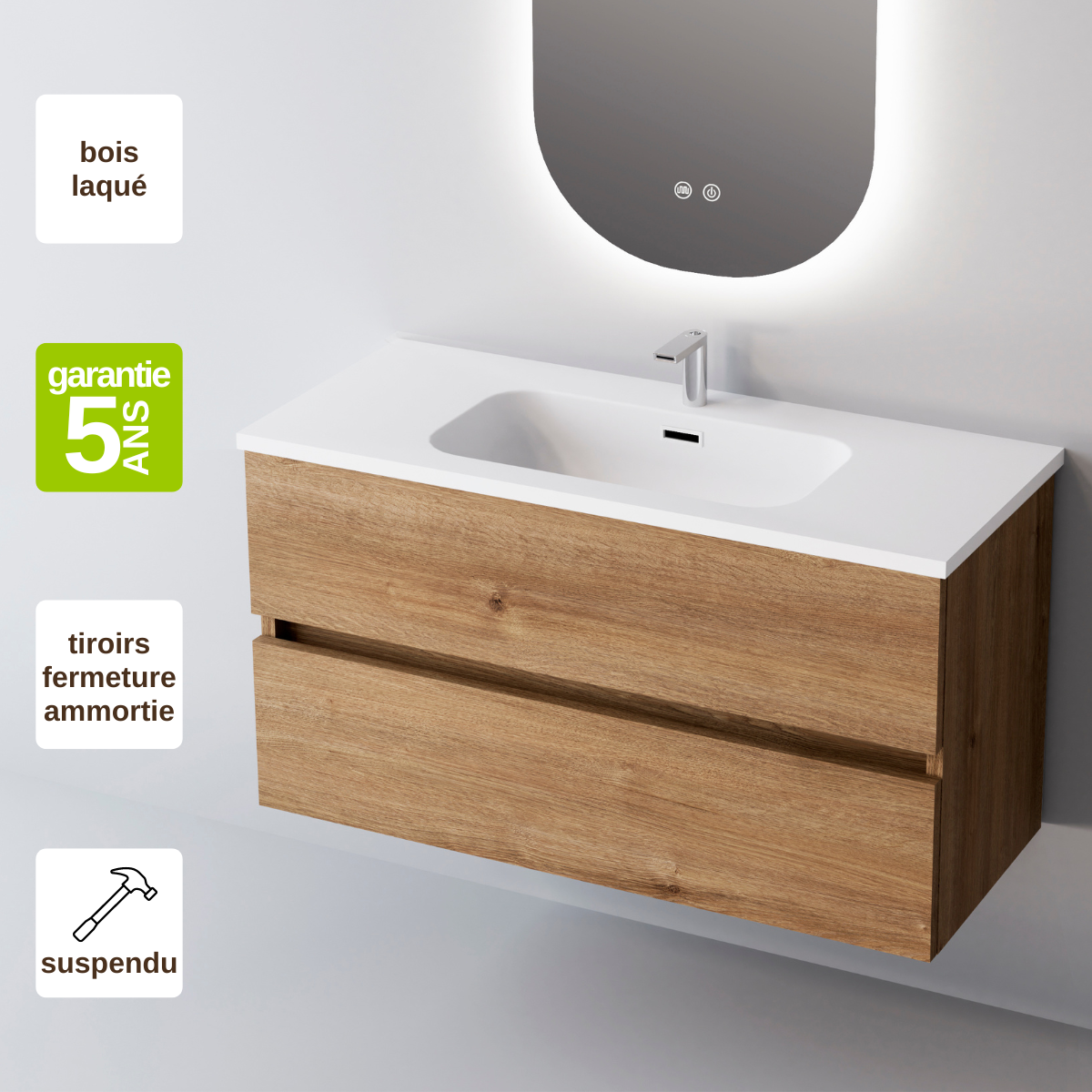 Offrez à votre salle de bain une touche d'élégance avec les meubles SANIZÉO. Fabriqué en MDF hydrofuge de 19mm, ce matériau possède des propriétés mécaniques extraordinaires qui lui confèrent une grande stabilité et ne gonfle pas avec les changements d’hygrométrie. 💧🛠️