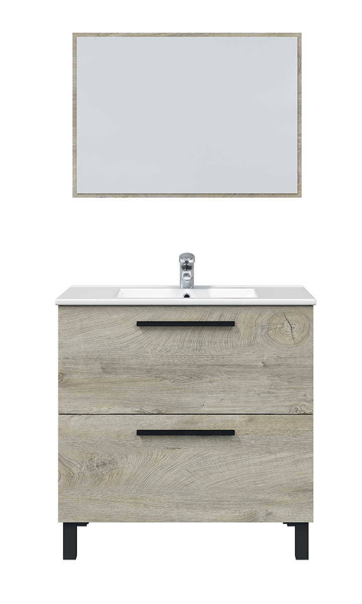 Meuble salle de bain sous vasque avec 2 Tiroirs + 1 Miroir coloris Alaska chêne - Longueur 80 x Profondeur 45 x Hauteur 86 cm