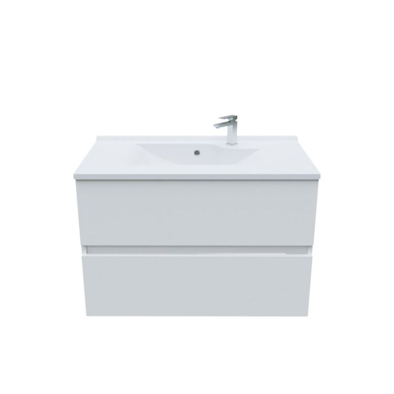 Meuble salle de bain suspendu 80 cm ROSALY | coloris : Blanc | plan vasque : Résine