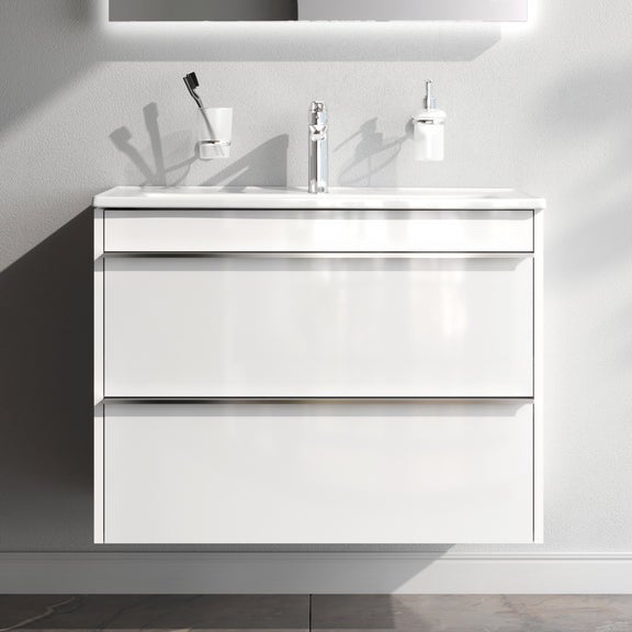 AM.PM Hit – Meuble de salle de bain moderne avec lavabo en céramique (80 cm, blanc brillant)
