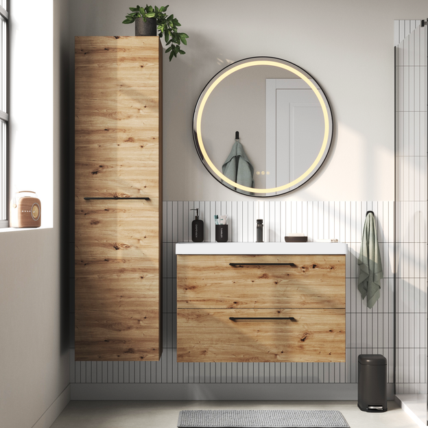 Meuble sous-vasque, 2t L.90cm x H.58cm x P.46cm effet chêne doré Remix