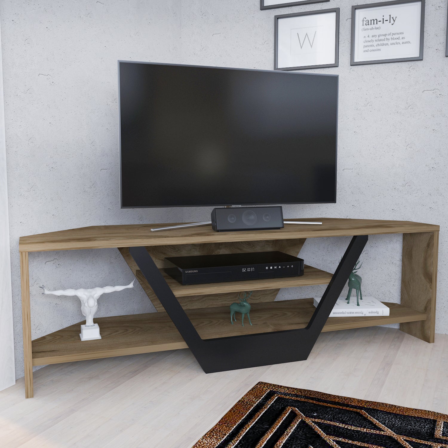 Meuble tv d`angle sares en forme v - etagères ouvertes (oud et noir)