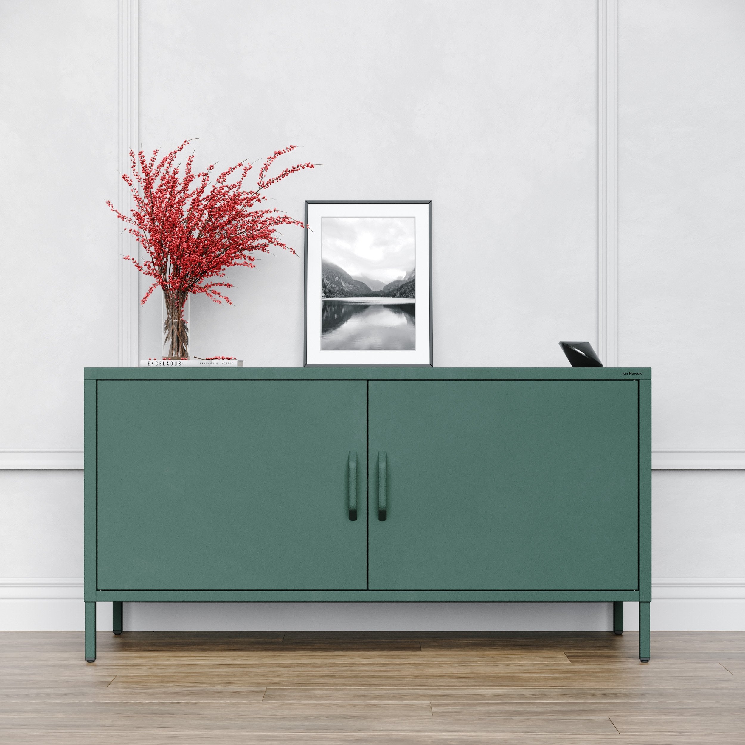 Meuble TV Industriel Métal - Rosa | Table Television Salon 2 Portes, Fermeture magnétique silencieuse | 115 x 59,5 x 40 cm | Vert Bouteille