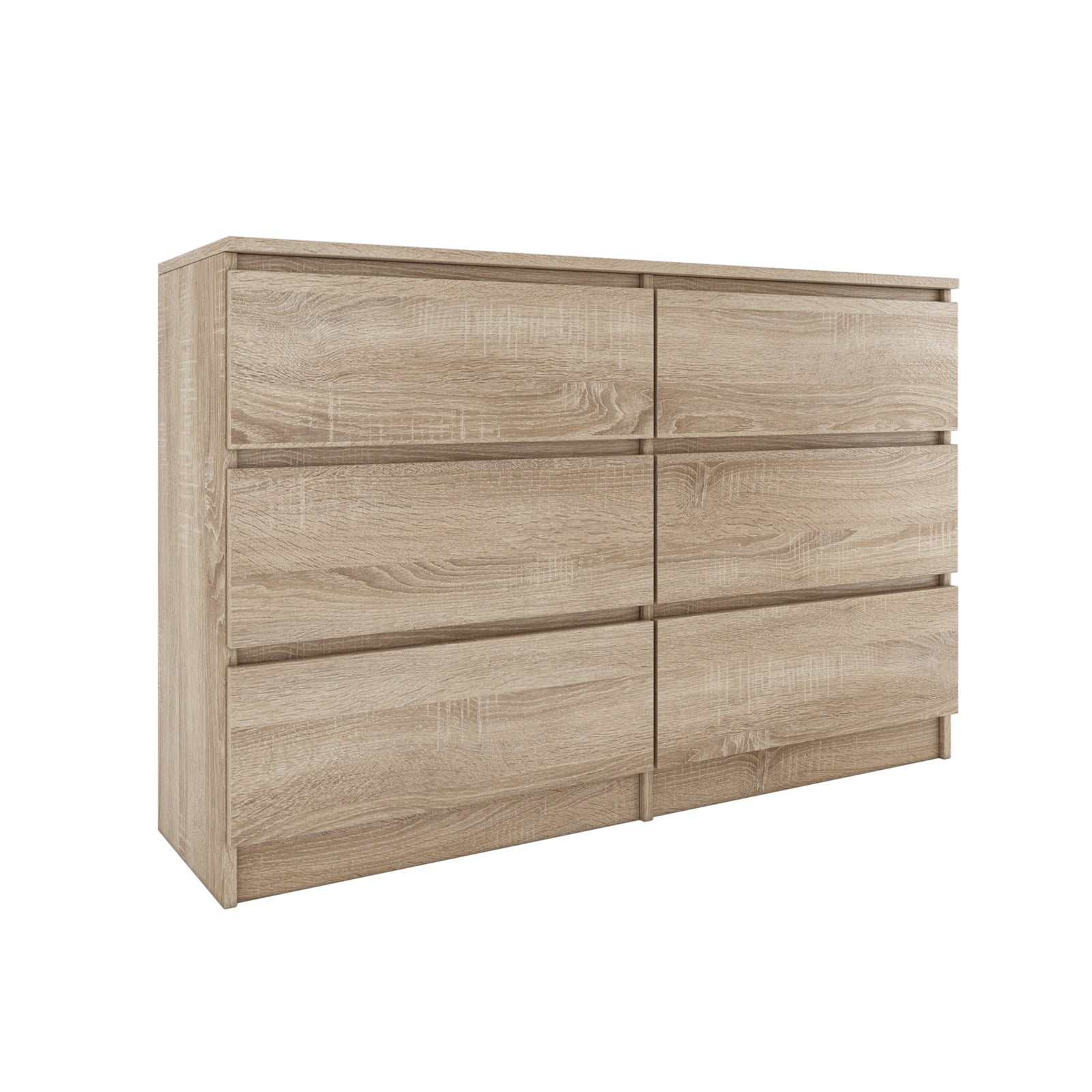 MILAN - Commode contemporaine chambre/salon/bureau 30x120x77 cm - 6 tiroirs - Meuble de rangementent - Chiffonier - Sonoma