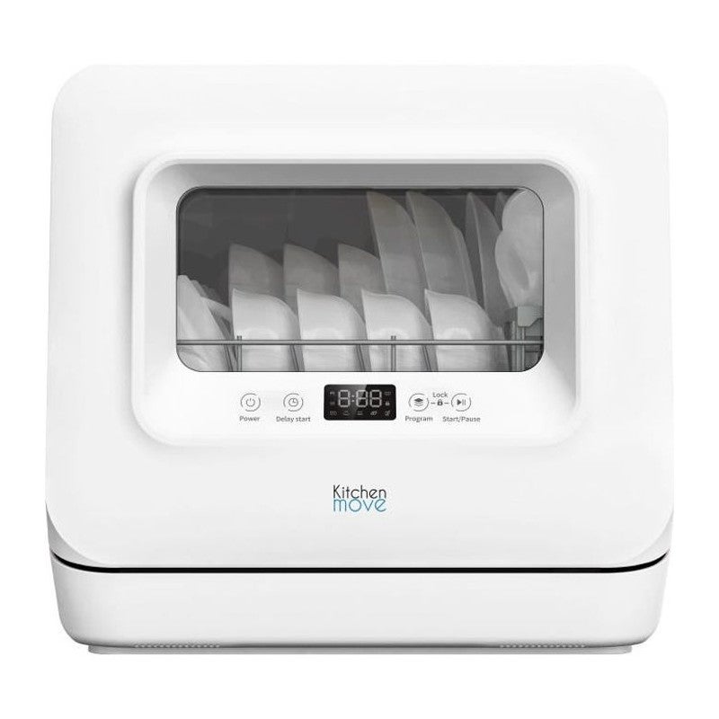 Petit lave-vaisselle avec réservoir d'eau intégré. Prét àl'emploi : pas d'installation nécessaire. Dimension : 45.4x41xH49cm. A poser sur un plan de travail ou àencastrer. De la place pour 3 couverts avec un encombrement réduit. Eclaire intérieur intégré. Cinq programmes différents : Eco, une heure, rapide, stérilisation et verre. Départ différé :de 1 h à24 heures pour programmer le début de lavage selon vos besoins.