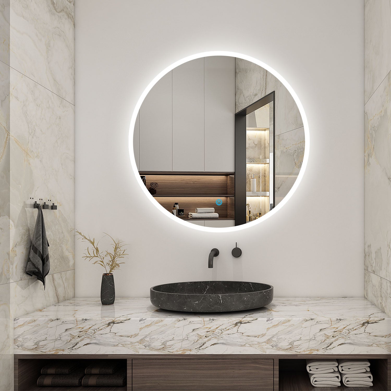 Miroir arrondi salle de bain, Miroir rond anti-buée avec éclairage, Miroir étanche très leger , Diamèter Φ: 60 cm