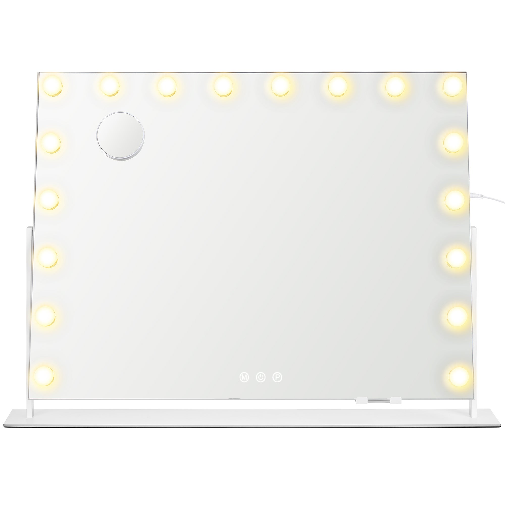 Miroir de Maquillage, avec Ports de Charge, 18 Ampoules, Miroir Grossissant, 80 x 60 cm, Blanc