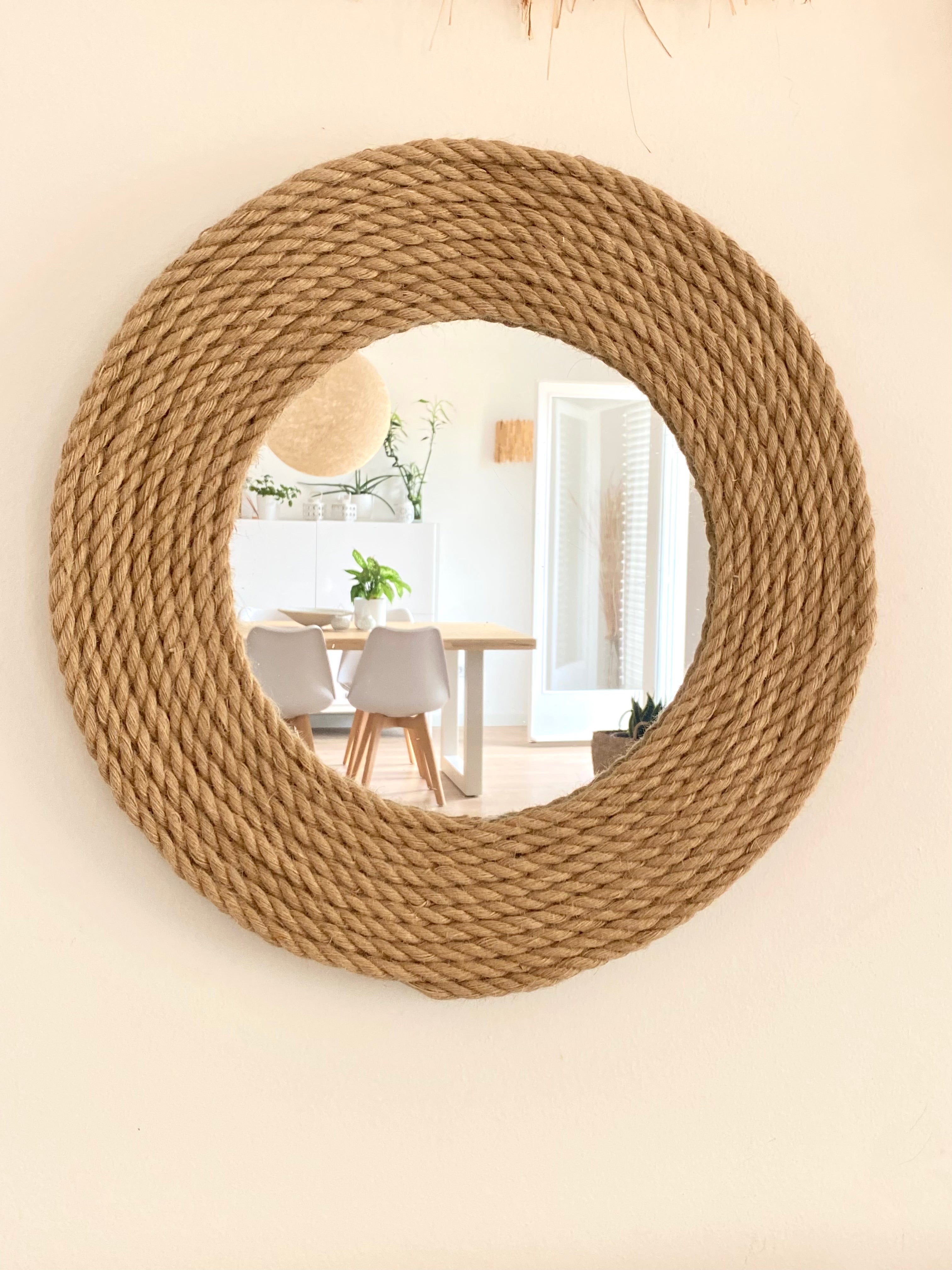 Le miroir rond en corde de jute CORD JUTE de Geometrik Design est une pièce artisanale et polyvalente, fabriquée avec du jute 100 % naturel, qui s'adapte à tous les styles de décoration, qu'ils soient méditerranéens, rustiques ou classiques. Son design unique, avec des cercles de jute qui s'enroulent autour du miroir, en fait le centre d'attention de n'importe quel espace, apportant naturel et personnalité. De plus, comme il est possible de personnaliser ses dimensions, il peut être adapté aux besoins spécifiques de chaque client, garantissant ainsi une ambiance parfaite dans chaque maison.