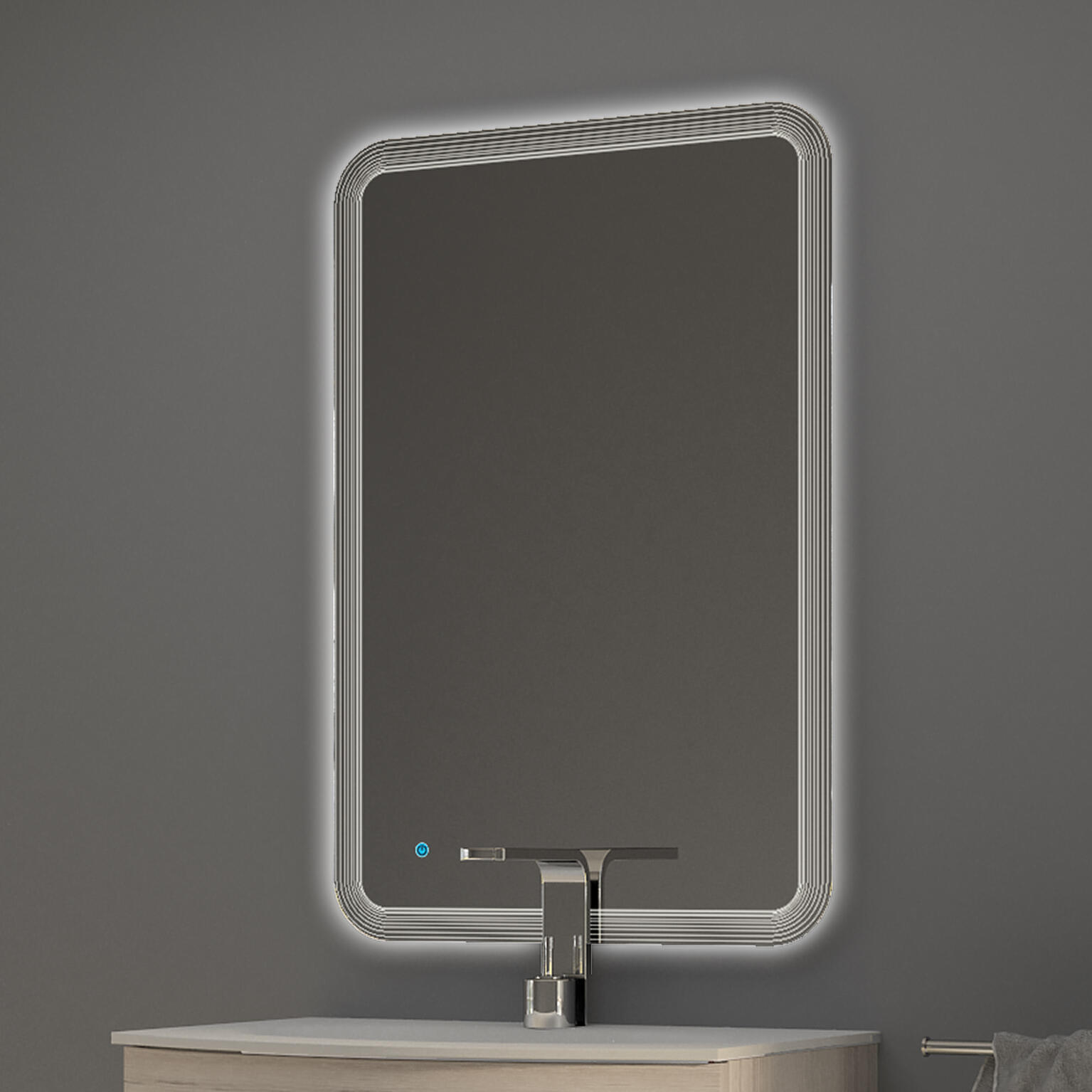 MIROIR RETROECLAIRE LED CM L60X90H AVEC TOUCH SYSTEM. Ce produit contient une source lumineuse de classe d’efficacité énergétique F.