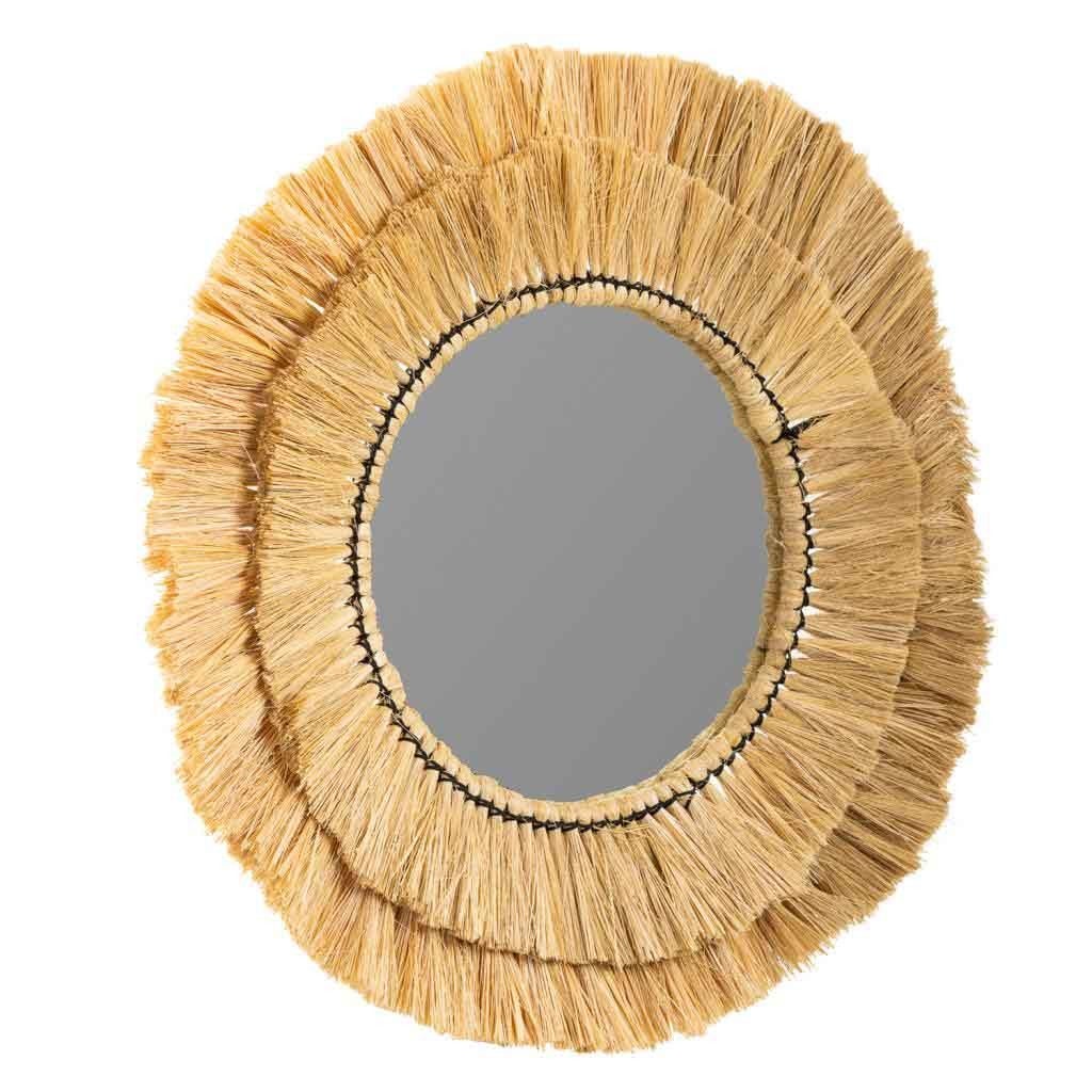 Un charmant miroir rond en fibre naturelle d'un diamètre de 57 cm et d'une épaisseur de 6 cm.Apportez une touche de nature à votre décoration.