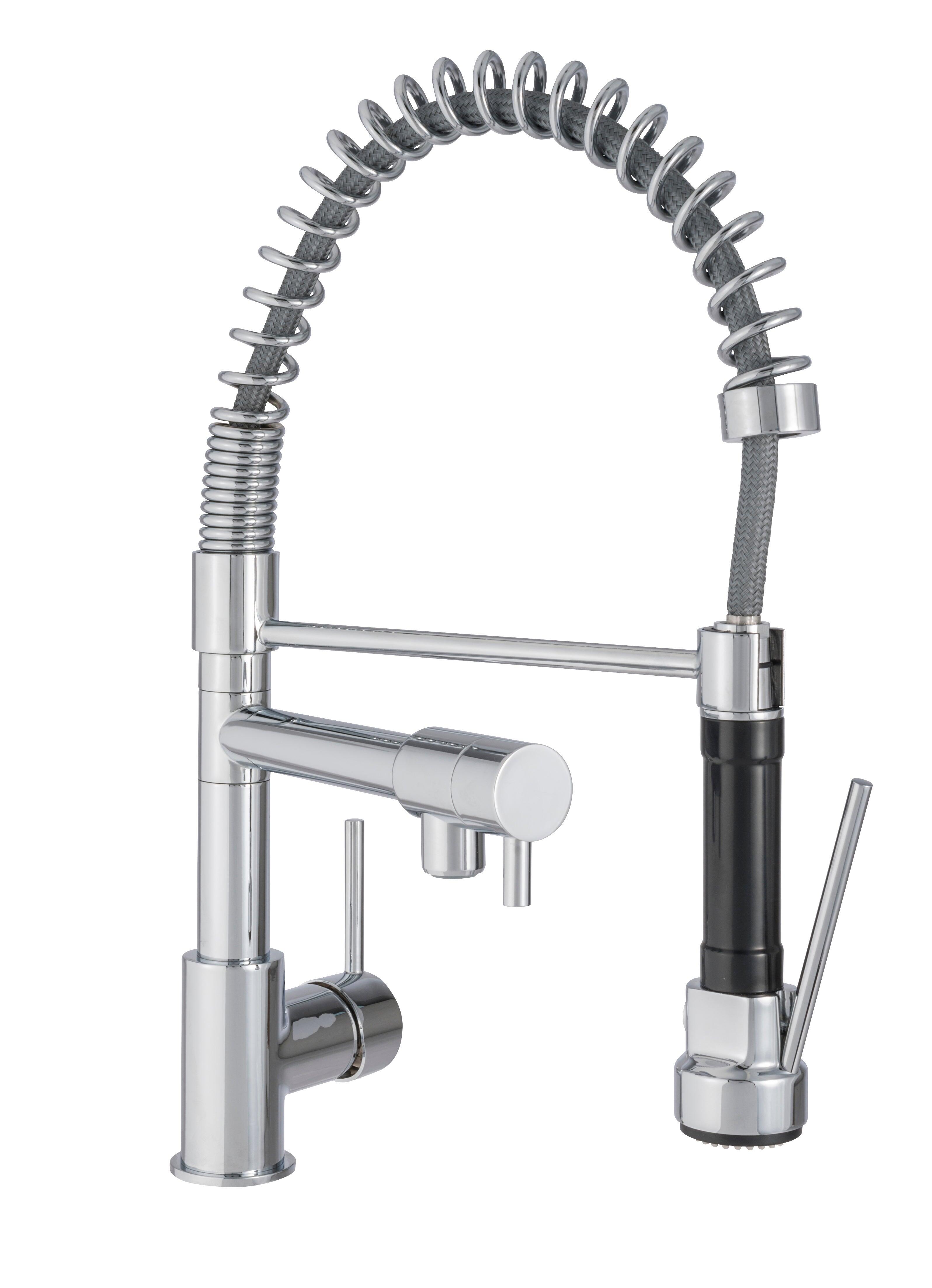 Robinet de cuisine Delinia en laiton avec poignée en zamak de couleur chromée avec finition brillante adaptée à une installation dans l'évier. Il intègre 2 douches indépendantes, l'une droite idéale pour remplir des casseroles et des poêles et une autre avec un bec de chef avec un tuyau amovible qui facilite l'accès à toutes les pièces, surtout si vous cherchez à laver des fruits ou des légumes. Il possède un petit filtre sur le robinet et n’a aucun lien avec le filtre à eau externe. Il dispose d'une ouverture à levier unique pour réguler le débit et la température, l'ouverture la plus répandue en raison de sa facilité d'utilisation. Il intègre un aérateur d'eau anticalcaire (facile à nettoyer) qui permet d'économiser jusqu'à 25 % du débit descendant, réduisant ainsi la consommation d'eau sur votre facture d'habitation. Son style contemporain est idéal pour apporter de l'utilité tout en embellissant la cuisine. Dimensions : 31 x 46 cm (largeur x hauteur).