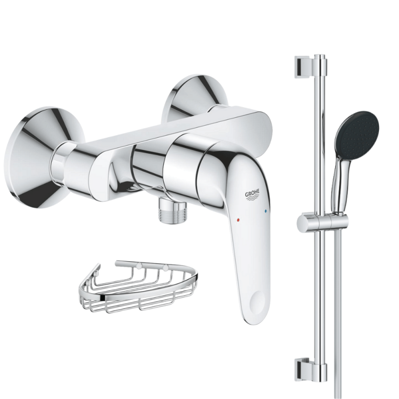 Mitigeur douche mécanique GROHE Swift 2023 + Ensemble de douche 2 jets avec barre + Panier porte-savon