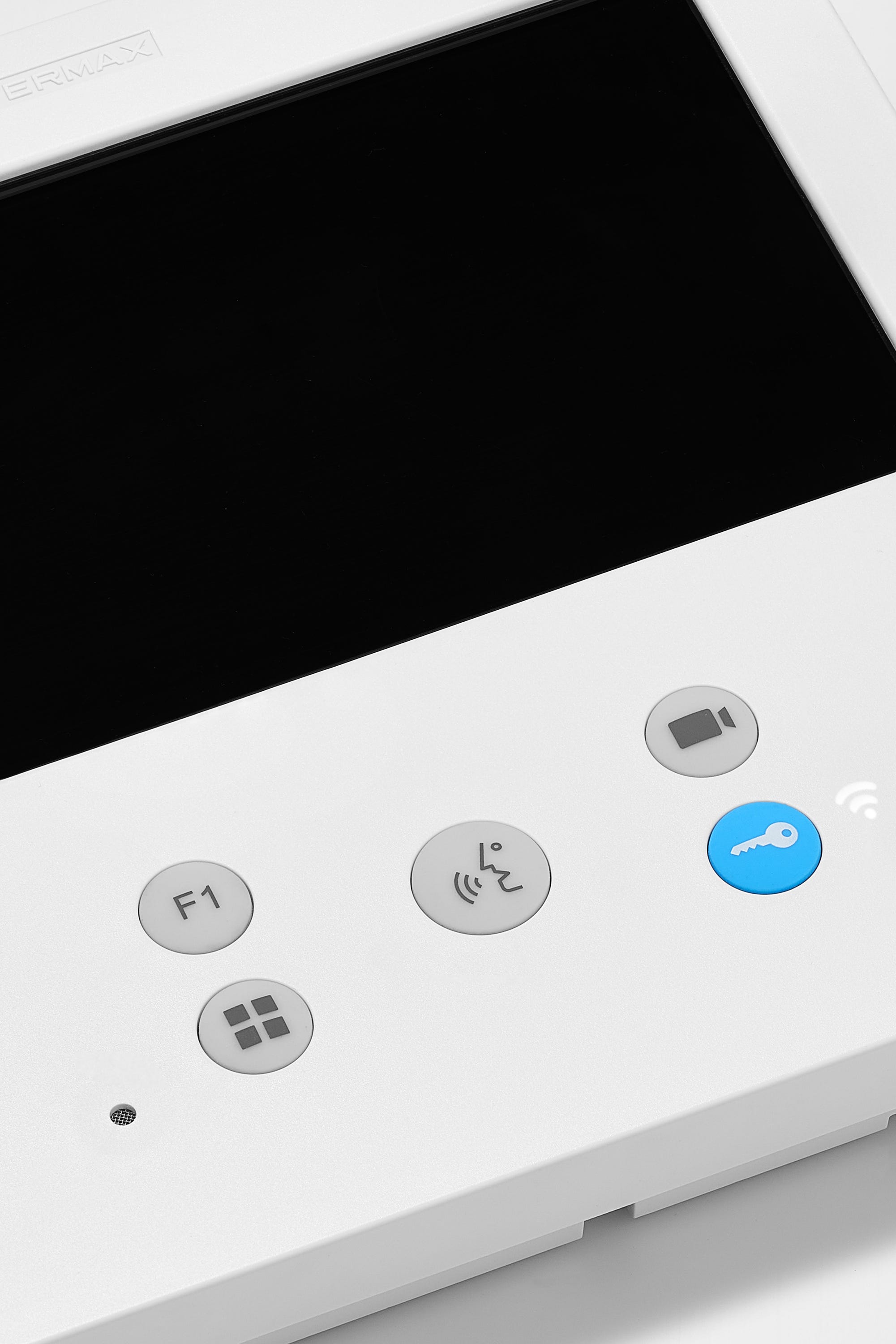 Moniteur mains libres avec écran tactile de 7" et transfert d'appel vers les appareils mobiles. Format panoramique 16:9. Résolution 800x480 pixels. Permet de sauvegarder un historique des appels et de le compléter avec des images ou des vidéos. Permet de régler la date et l'heure ; Sélection de mélodies ; Réglage du volume d'appel ; Fonction ne pas déranger ; Réglage du volume audio de conversation ; Réglage de la luminosité, du contraste et de la couleur. Dimensions : 185x185x21mm.