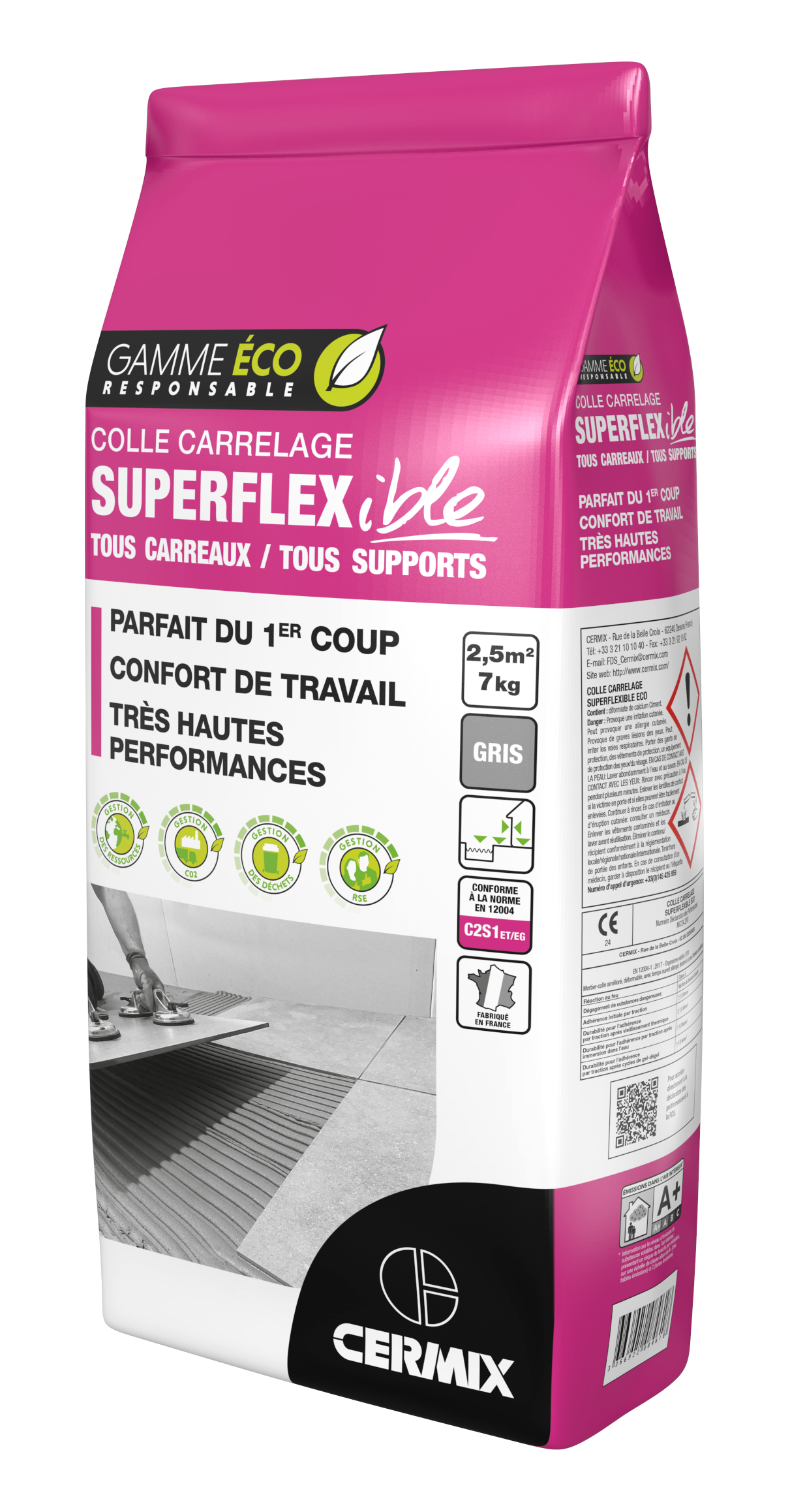 Mortier colle carrelage, poudre, superflexible CERMIX gris 15 kg