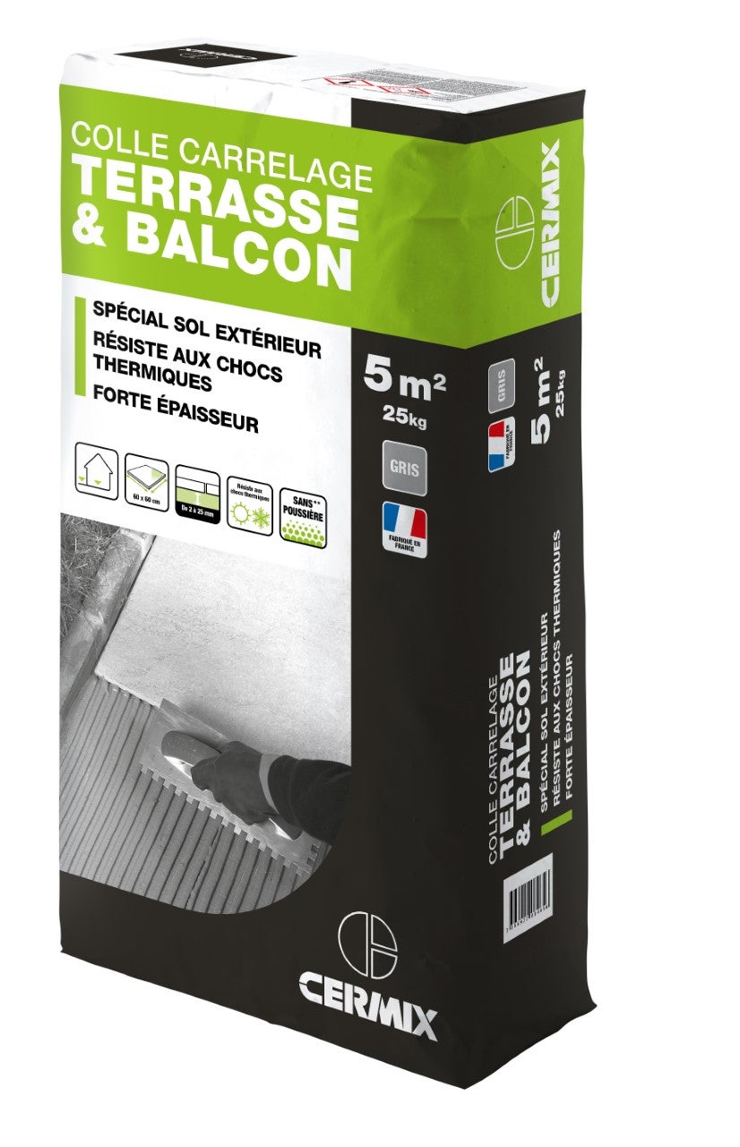 Mortier colle carrelage terrasse et balcon, poudre CERMIX gris 25 kg