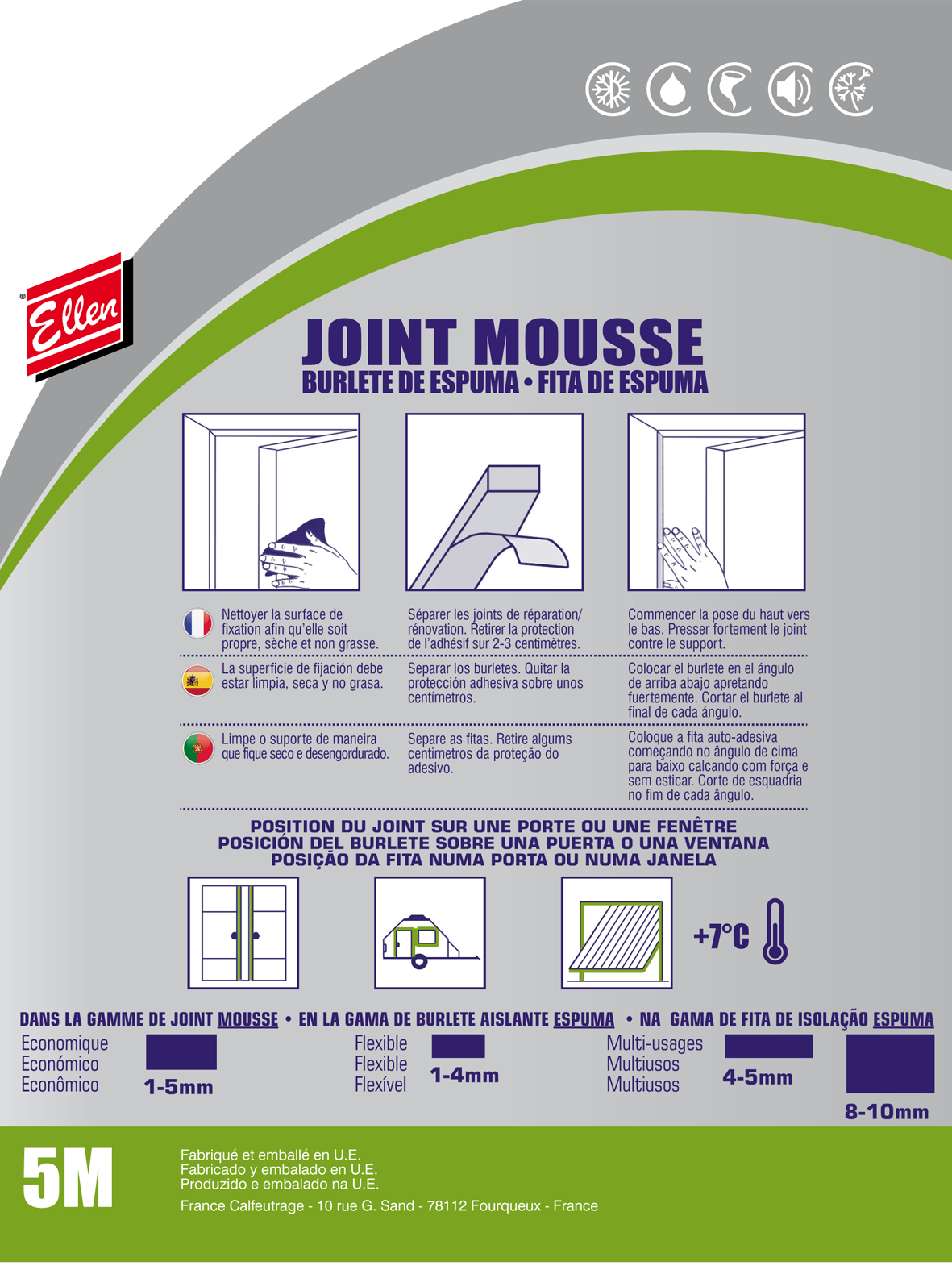 | Espace à calfeutrer de ... à ... largeur (en mm) | 8 A 10 MM |