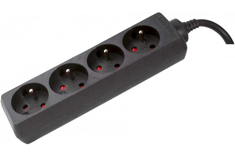 Multiprise électrique 4 prises sans interrupteur noiremultiprise électrique tripolaire 2 pôles + terrenombre de prises : 4 prisesprises avec sécurité enfantscâble : H05VVF 3 x 1,5 mm2longueur du câble : 4mpuissance : 16 A (3.680 W max)multiprise certifiée NFcouleur : noire
