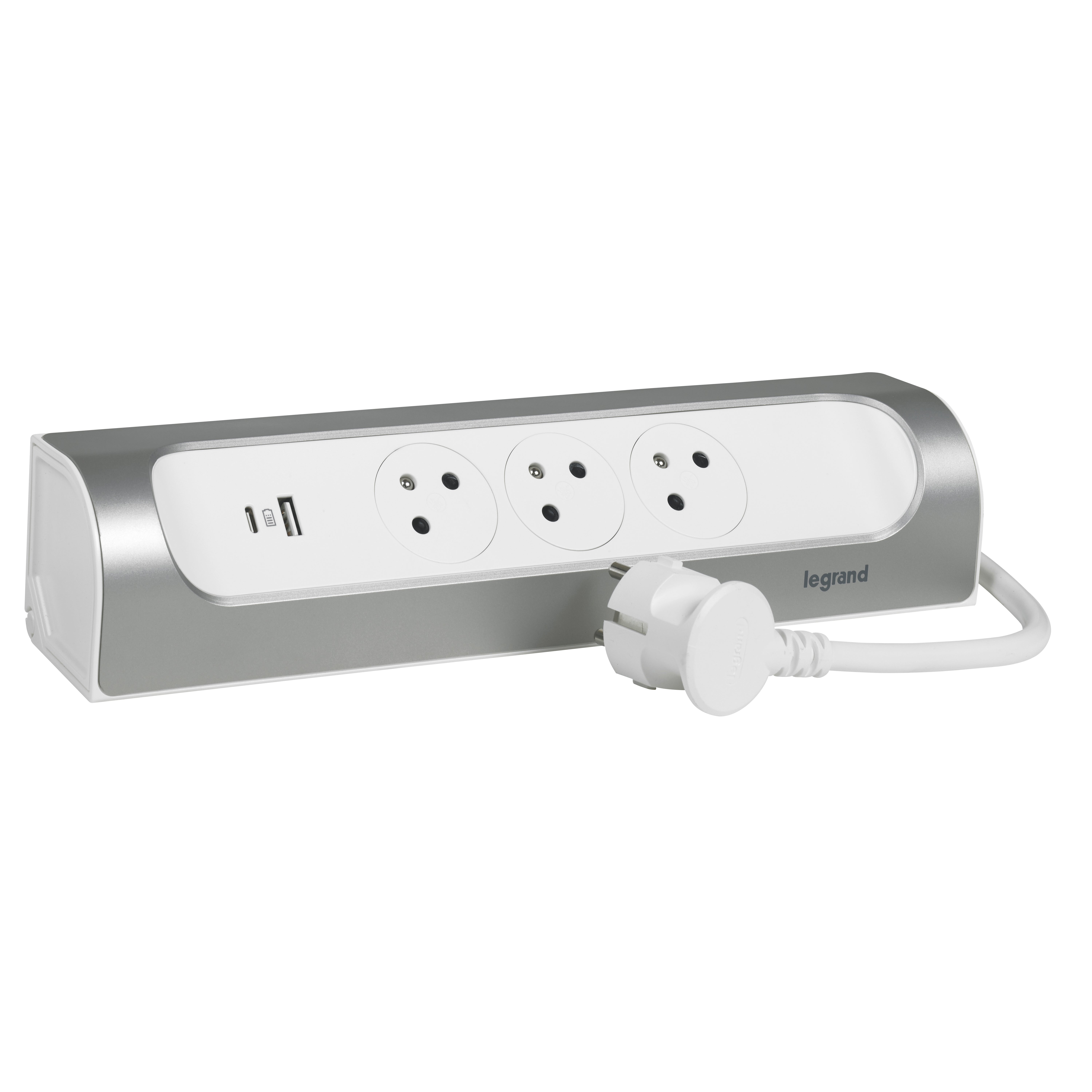 Multiprise 3 prises 1 USB A 1 USB C 1 m aluminium LEGRAND