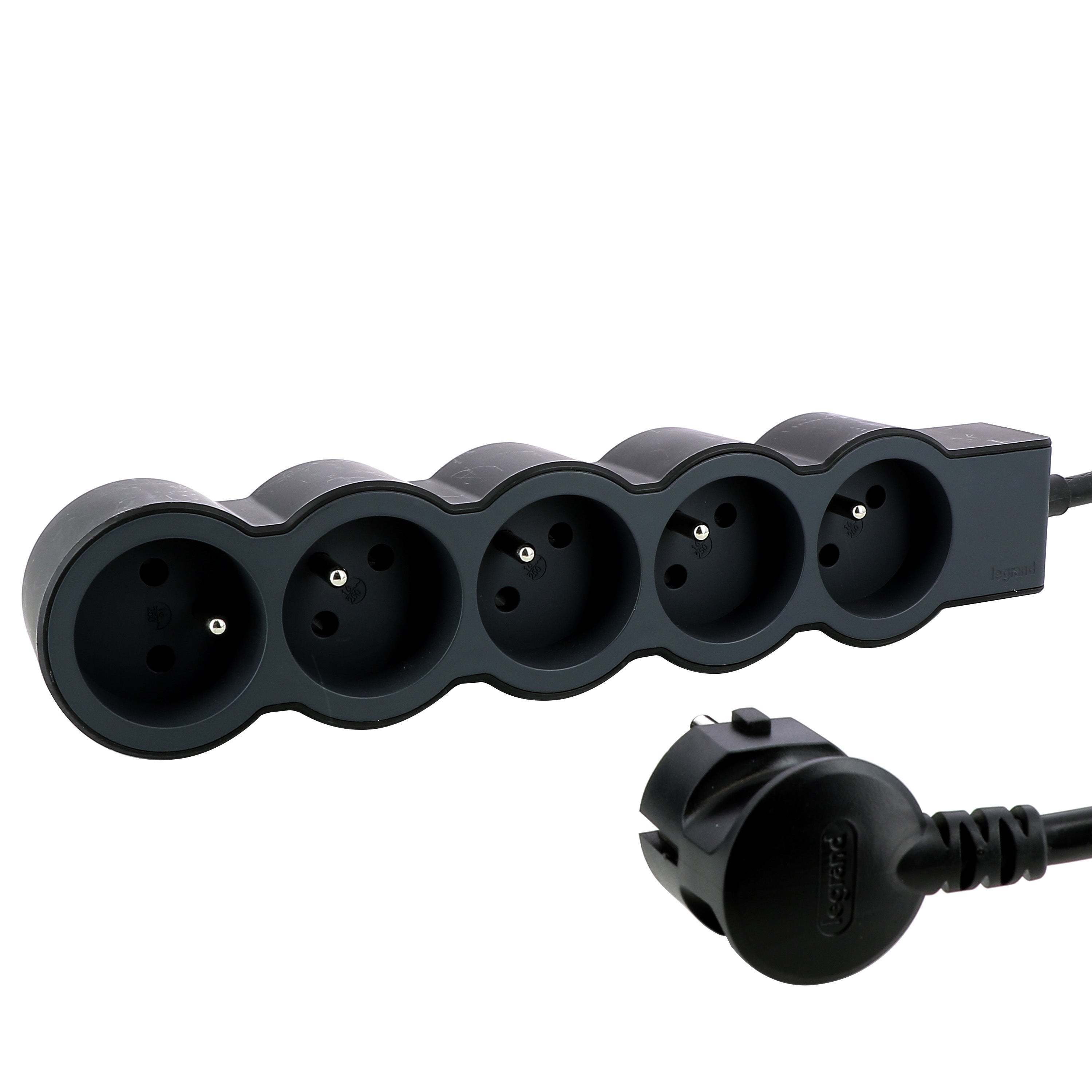 Multiprise filaire compact, 5 prises noir 3 mètres LEGRAND