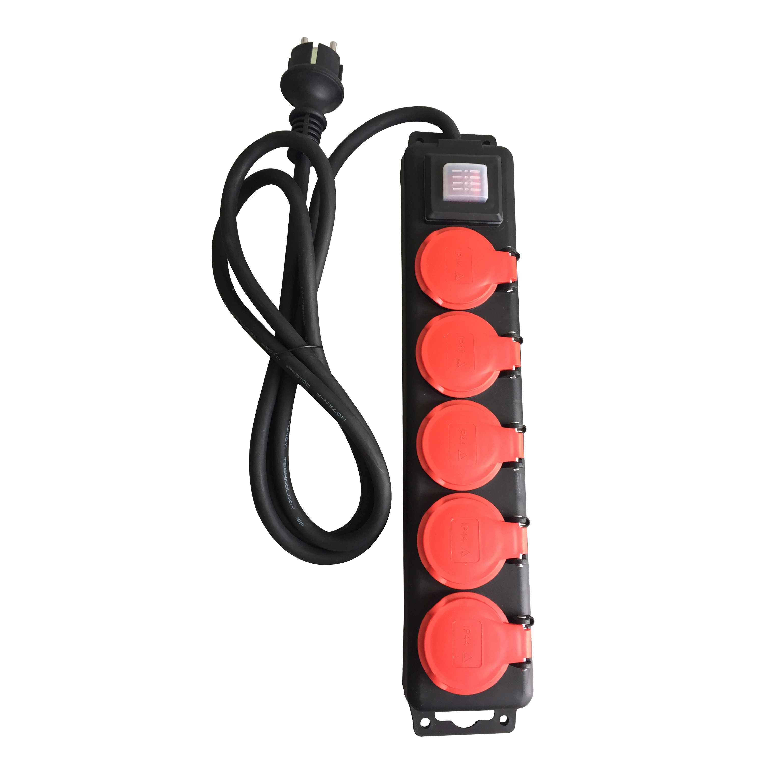 Multiprise filaire extérieure, IP44, 5 prises rouge / noir, 2M, LEXMAN