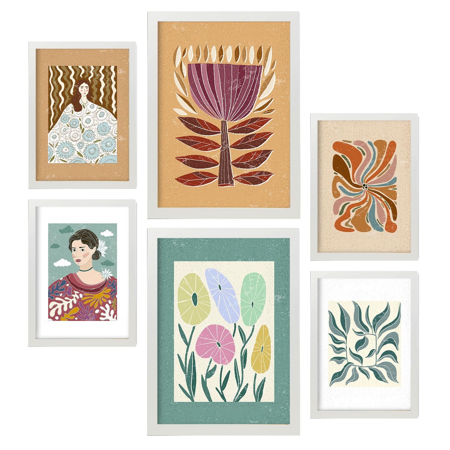 Nacnic Ensemble 6 Impressions De Fleuron Dans De Style Ethnique Cadre Décoratifs Pour Votre Chambre Maison Impression A4 A3 Avec Des Cadre Blanc