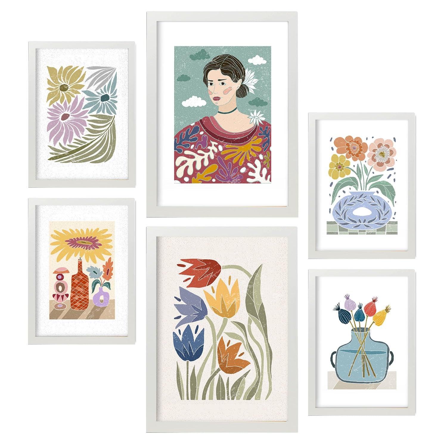 Nacnic Ensemble 6 Impressions De Garden De Style Ethnique Cadre Décoratifs Esthétiques Pour Votre Chambre Maison Impression A4 A3 Avec Des Cadre Blanc