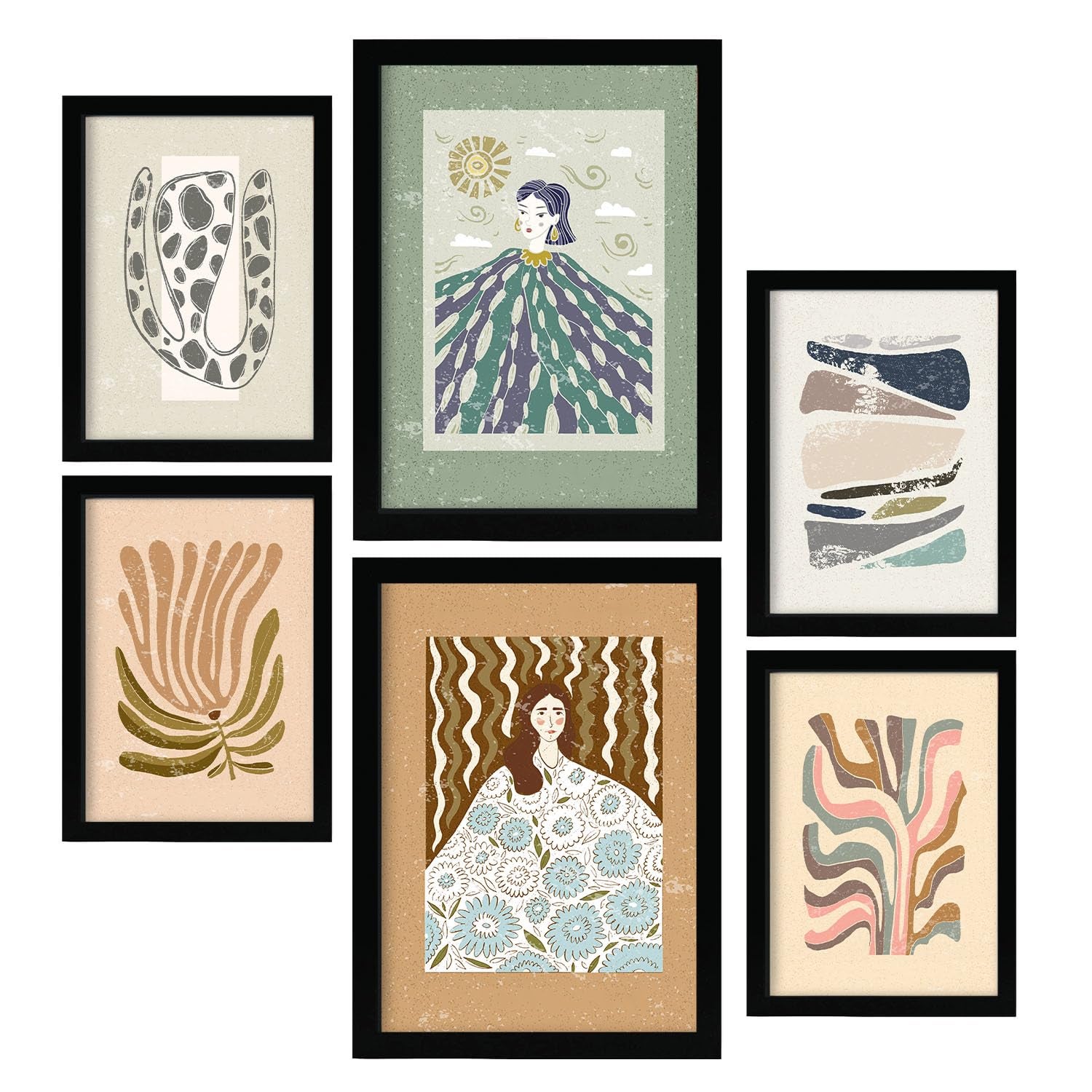 Nacnic Ensemble 6 Impressions De Mère Nature Dans De Style Ethnique Cadre Décoratifs Pour Votre Chambre Maison Impression A4 A3 Avec Des Cadre Noir