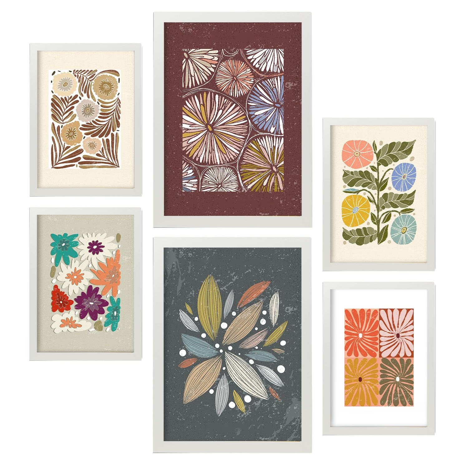 Nacnic Ensemble 6 Impressions De Pétales Dans De Style Ethnique Cadre Décoratifs Pour Votre Chambre Maison Impression A4 A3 Avec Des Cadre Blanc