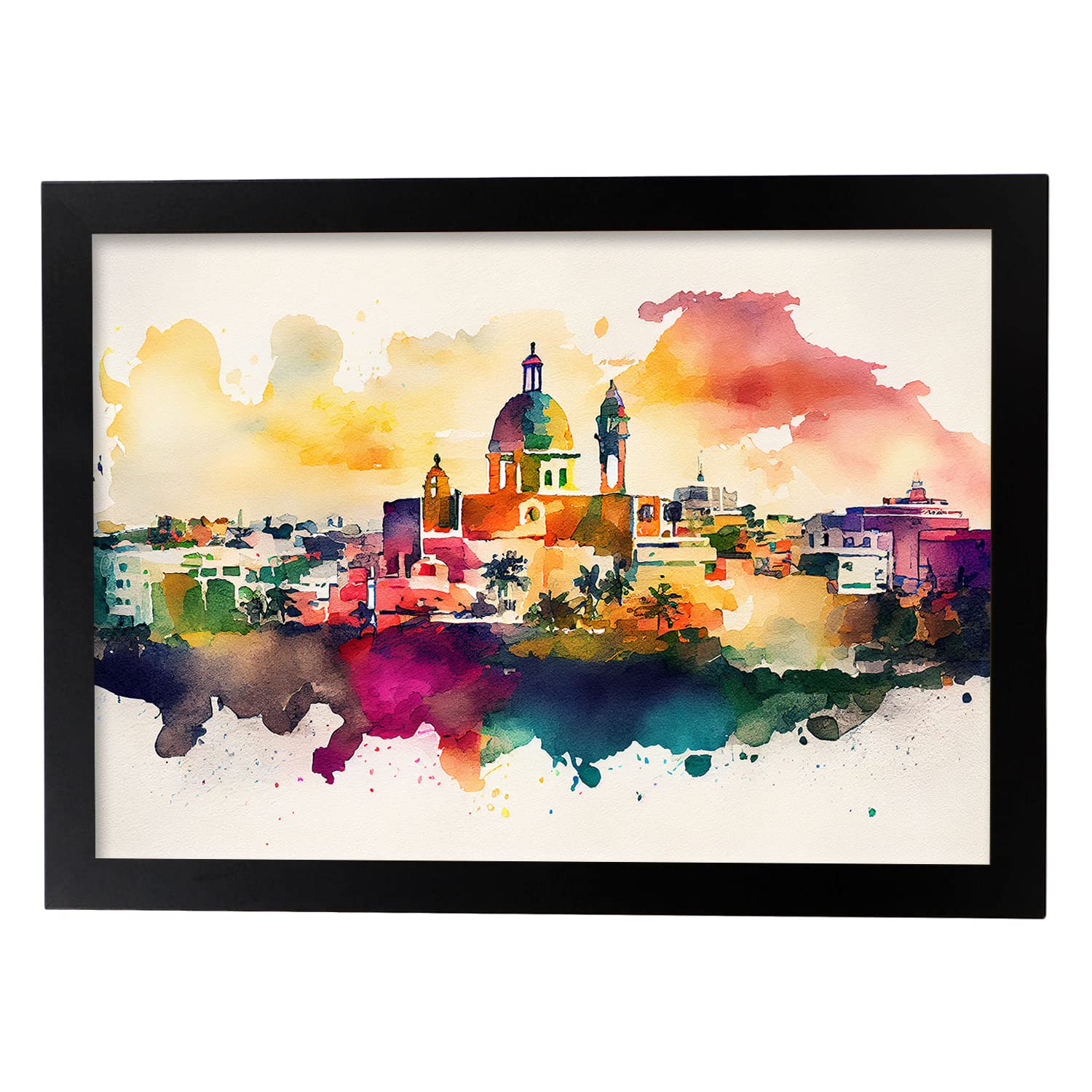Nacnic San Juan Affiche Dans L'horizon Abstrait De Style Aquarelle Et De L'du Monument Impression D'art Murales Modernes A4 Avec Cadre Noir