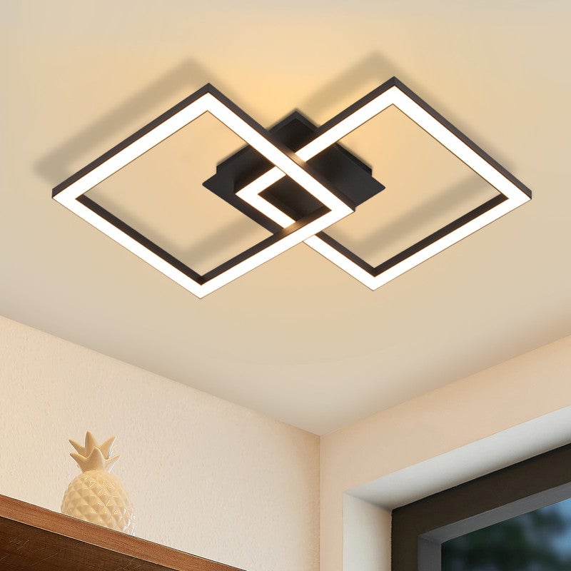 【Conception rotative】 Ce plafonnier LED moderne Nettlife est fabriqué en métal de haute qualité avec deux éléments lumineux carrés et des caches en aluminium. L'un des cadres carrés est réglable, vous permettant de personnaliser l'angle et l'apparence selon vos goûts personnels.