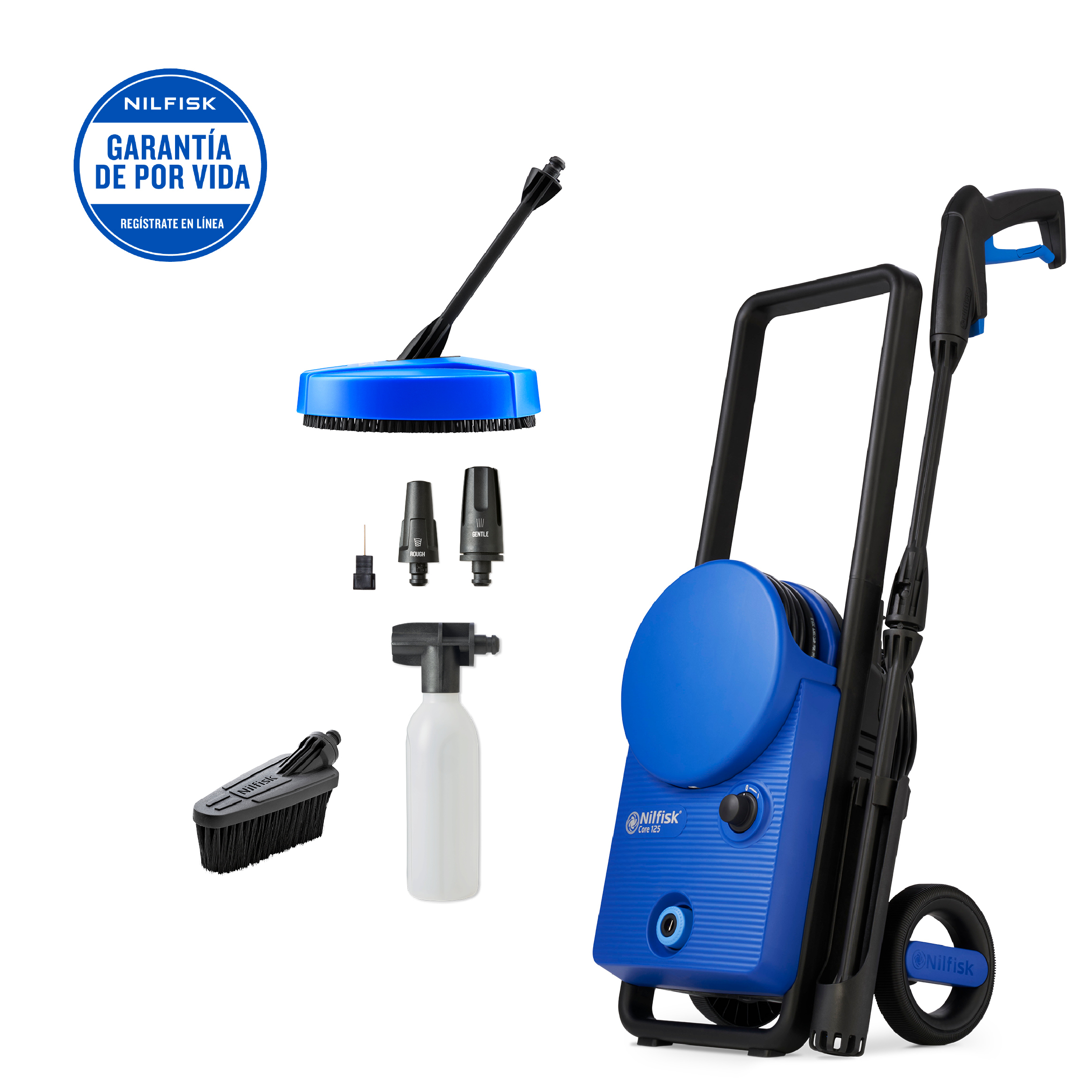 Nilfisk Core 125-5 Home Nettoyeur Haute Pression – 125 bar, 1400 W – Avec Nettoyeur Terrasse et Brosse Fixe Courte – Pour Terrasse, Mobilier de Jardin