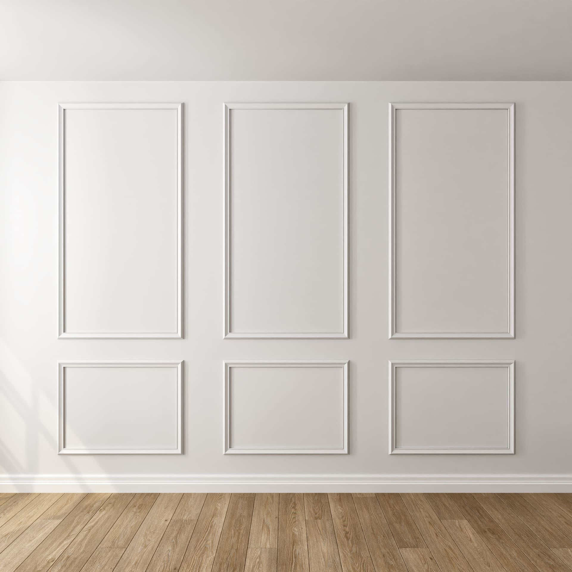 Kit moulures prêt à poser Idéal pour créer un soubassement élégant et structuré, ce kit de moulures en bois massif apporte une touche raffinée à vos murs. Parfait pour personnaliser vos espaces, il s'adapte à tous les styles d'intérieurs, des plus classiques aux plus modernes. Avantages et caractéristiques - Kit complet : 3 cadres de 150 x 80 cm et 3 cadres de 80 x 60 cm, section mouluré de 14 x 42 mm. - Coupes à 45° pour un assemblage précis, sans découpe supplémentaires pour une installation simple et rapide. - Bois massif FSC 100% - Ajustez les espacements entre les cadres à votre convenance pour un rendu sur-mesure et unique. Installation 1. Assurez-vous que vos murs sont propres et secs avant l'installation. 2. Disposez les moulures selon la composition souhaitée. 3. Appliquez une colle polyuréthane (PU) ou utilisez des clous de finition. 4. Peignez ou vernissez les moulures selon votre style. Réalisez un joint entre le mur et les moulures avec un mastic acrylique blanc. Il ne vous reste plus qu'à peindre vos murs et moulures à la couleur de votre choix