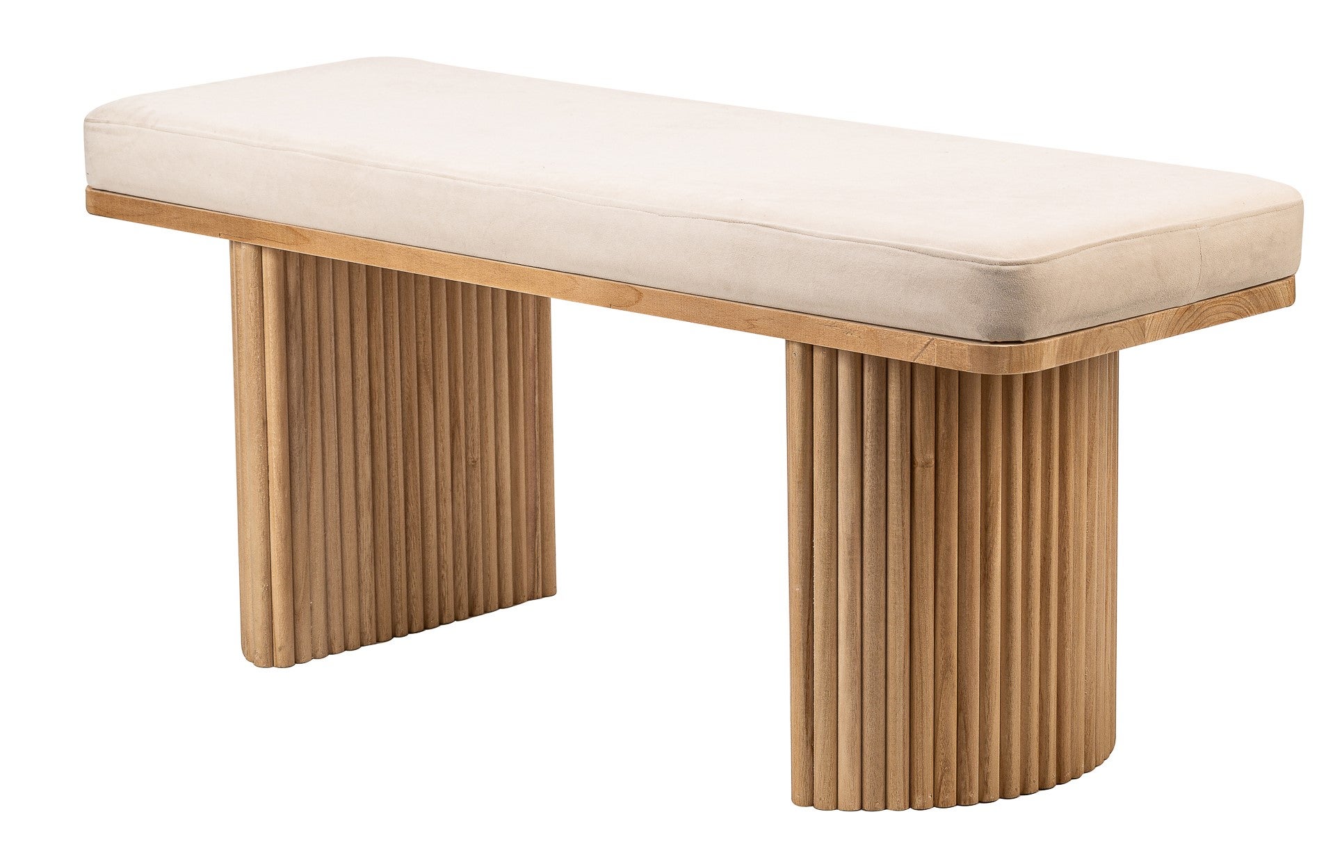 Nordlys - Banc Entrée Chambre Scandinave Bois Velours Beige