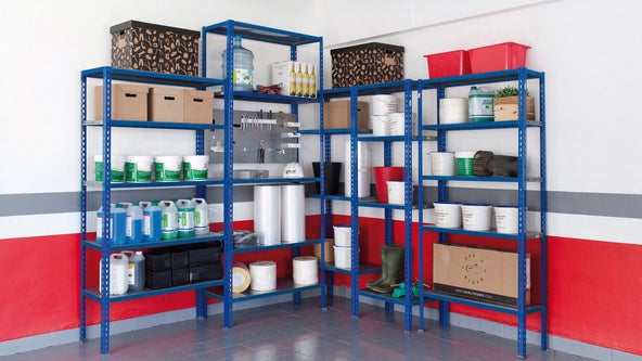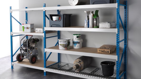 Aménager aisément votre garage, cave ou grenier. En optant pour une étagère avec les tablettes bois, vous pourrez facilement la transformer en rangement bas façon établi.