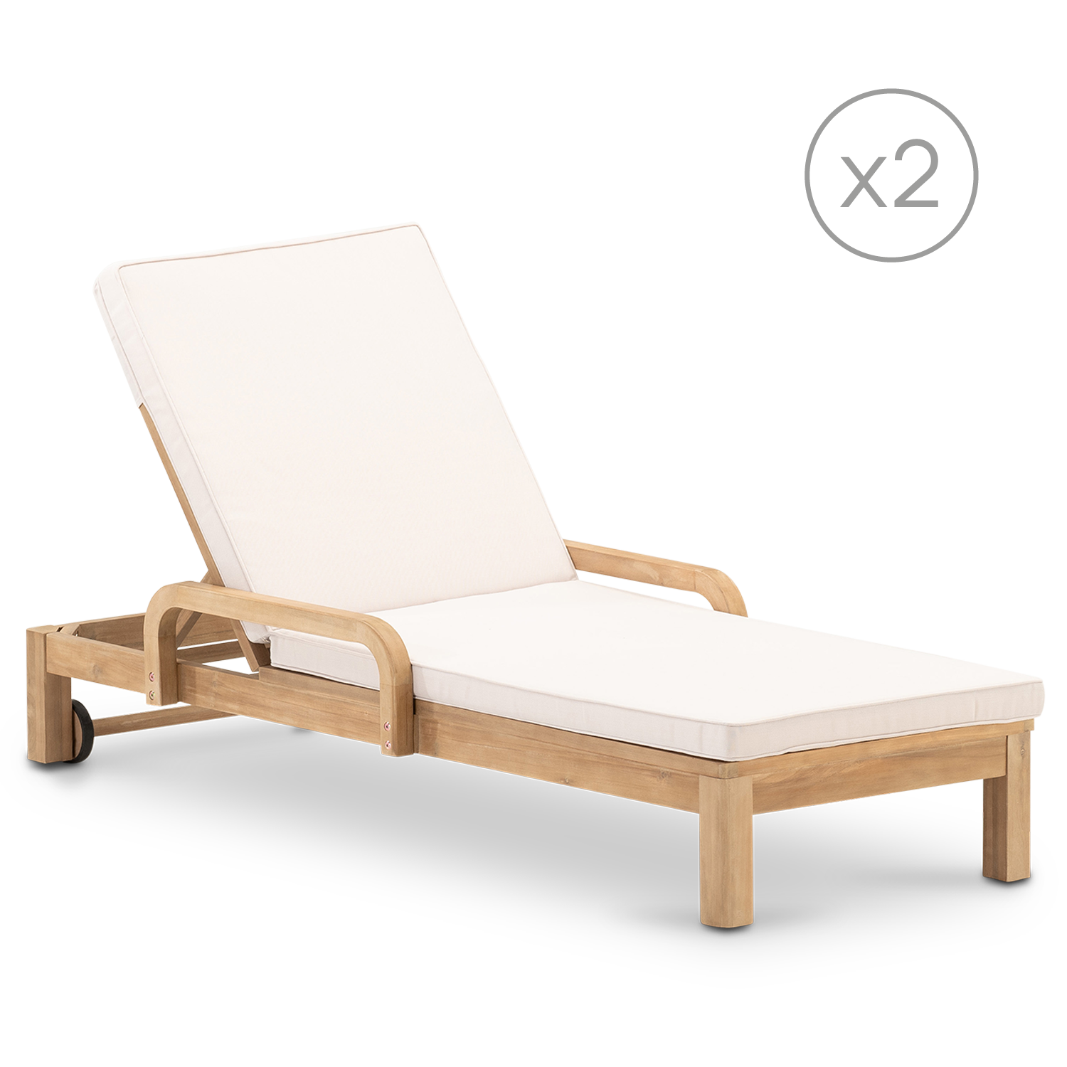 Pack de 2 chaises longues avec coussin et roulettes - Siena