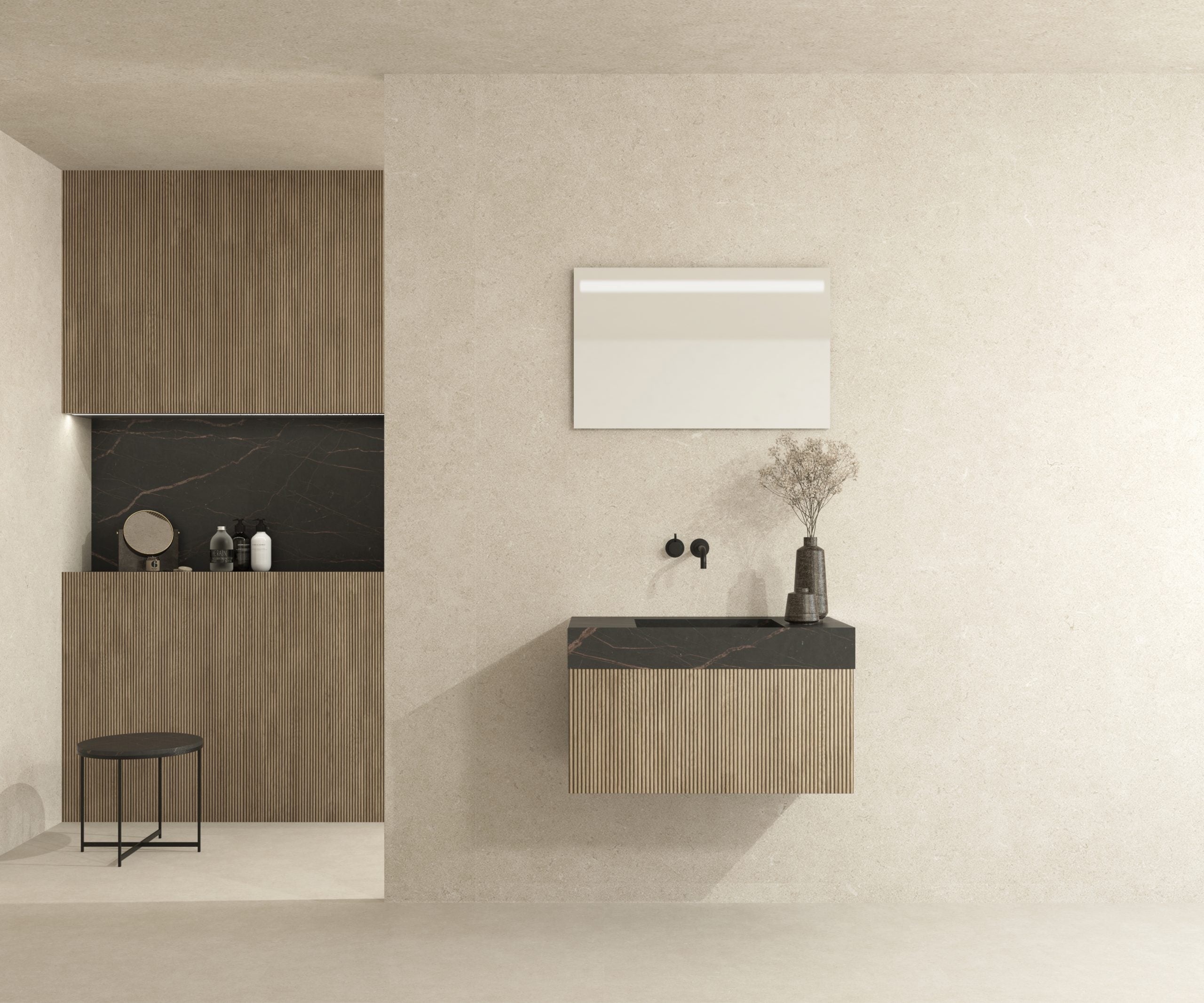 Pack Meuble Salle de Bain Avantarea avec Vasque Simple et Miroir LED NEOUVIELLE Dekton Laurent 120CM