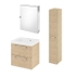 Pack Meuble SDB 80cm sur pieds 3 tiroirs Chene_Vasque blanche + Miroir Led - TIMBER 80_Pack46