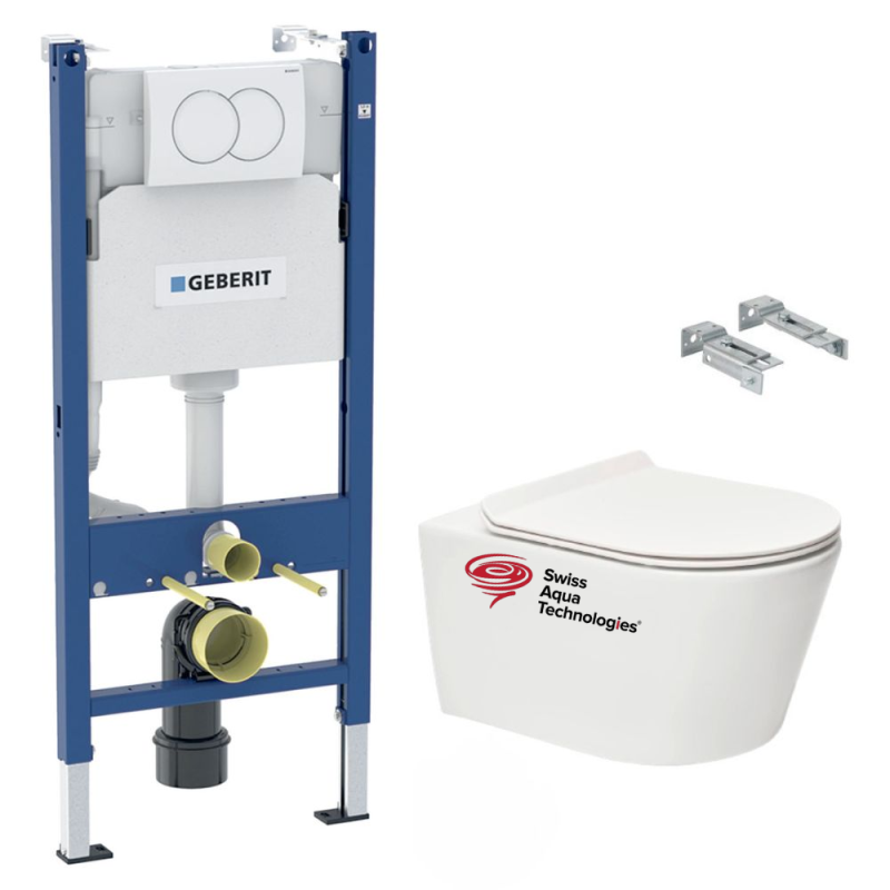 Pack WC sans bride Brevis, fixations invisibles + Abattant softclose slim + Bâti support Geberit UP100 + Plaque blanche
