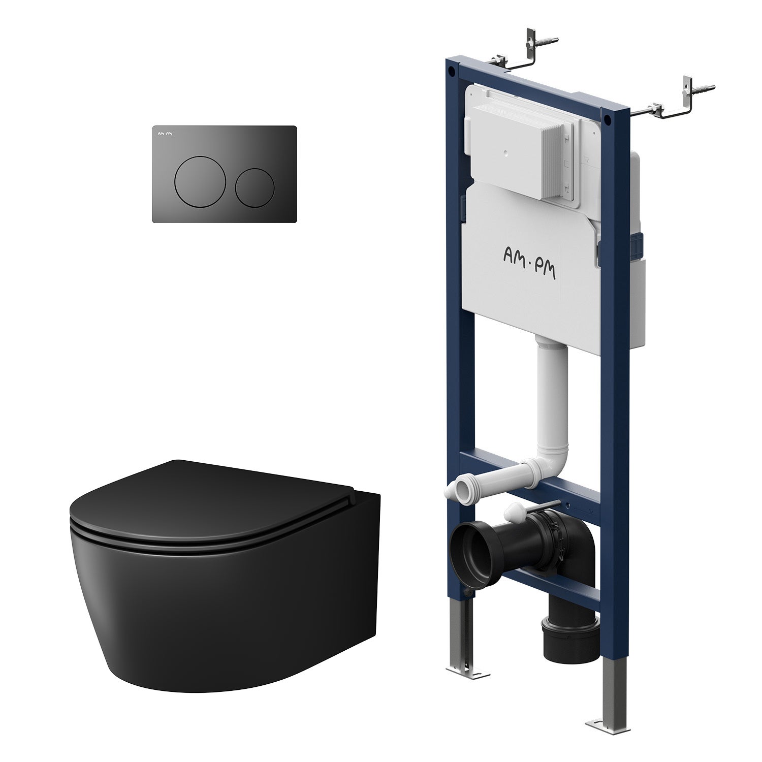 Pack WC suspendu bâti mural et cuvette Plaque Round Noire Pack WC Bati-support AM.PM X-Joy S