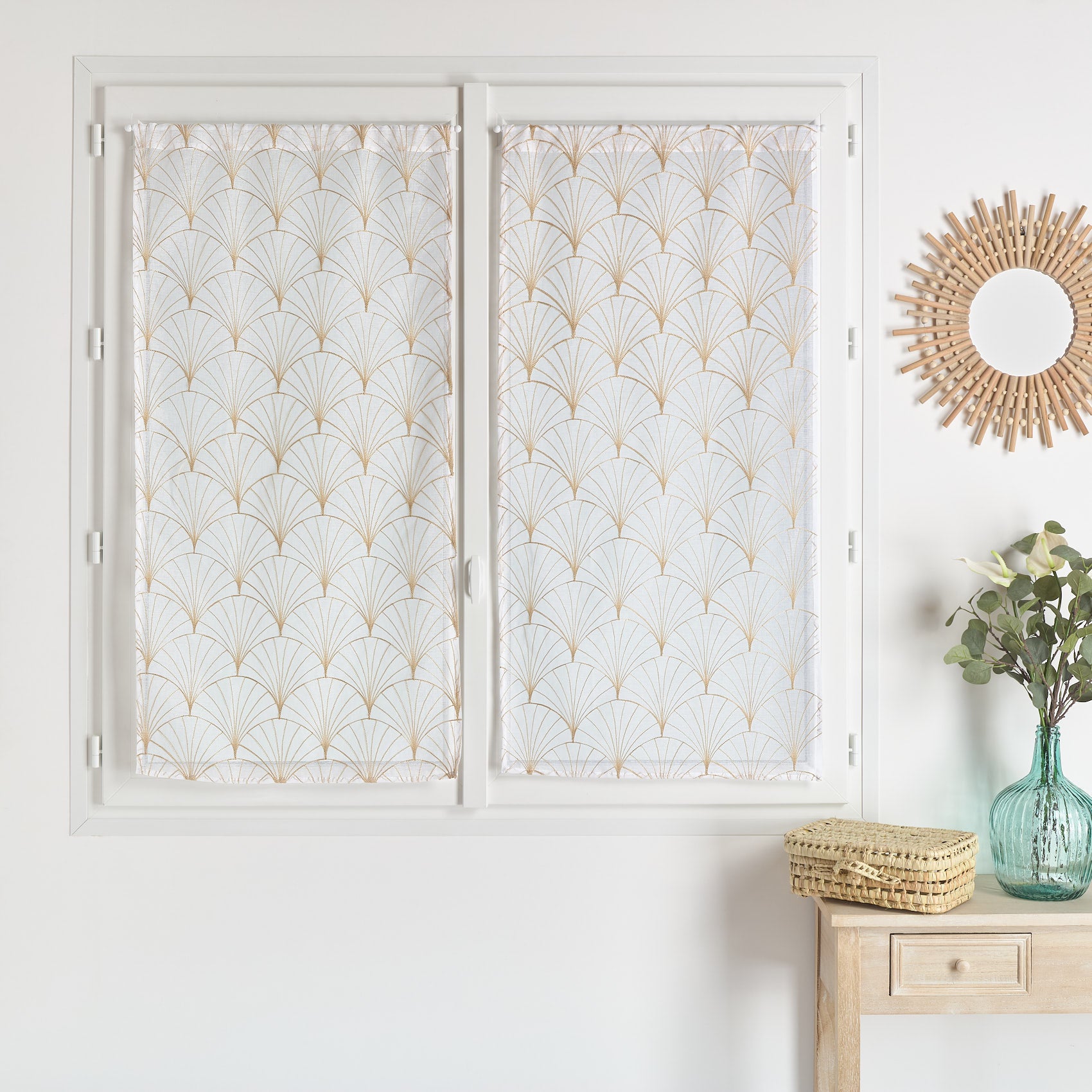 Paire de petits voilages brodés au style art déco - Beige - 60x120 cm - Polyester