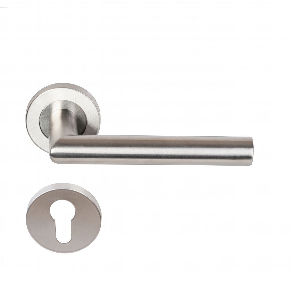 Paire de Poignées de porte sur Rosaces Rondes " Elsa Angle Vif " inox 304 KLOSE BESSER