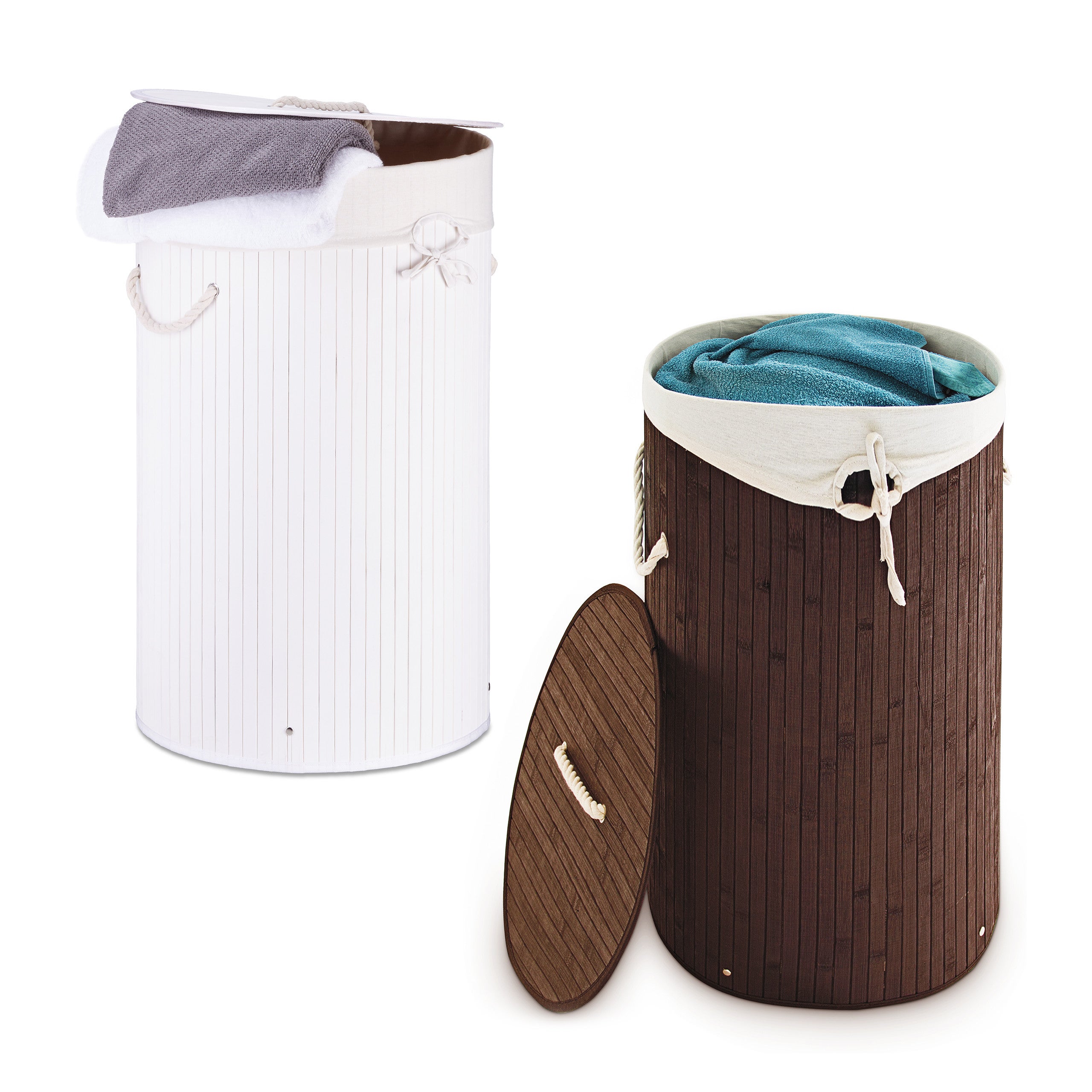 Panier à linge bambou, lot de 2, corbeille linge pliante, 80 L, sac intérieur coton, marron - blanc