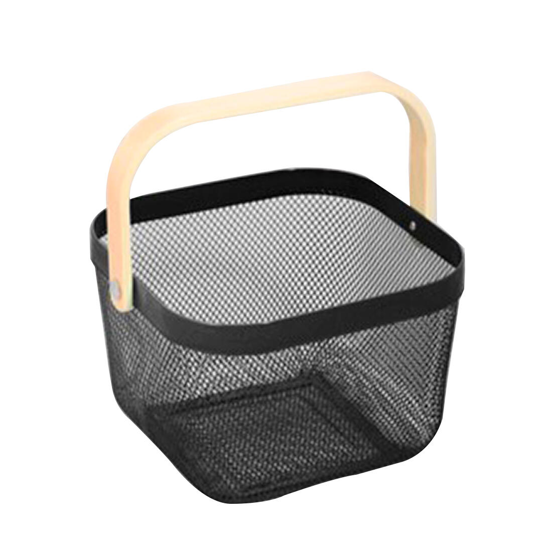 Panier carré noir en acier et anse bois H.18 x l.25 x P.25 cm